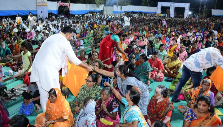 श्री रामनवमी निमित्त कोपरगाव शहरातील तहसील कार्यालयाच्या मैदानावर श्री साईगाव पालखी सोहळा व मुंबादेवी तरुण मंडळ यांच्या वतीने ह.भ.प. चारुदत्त महाराज आफळे यांच्या सुश्राव्य वाणीतून श्री विष्णुपुराण महाकथा आयोजित करण्यात आली असून मंगळवार (दि.१६) रोजी आ.आशुतोष यांनी कार्यक्रमास उपस्थित राहत काखेत झोळी अडकवत श्री साई गाव पालखी सोहळ्यासाठी भिक्षा मागितली.श्री साईबाबा सन्यस्त जीवन जगले. त्यांनी आयुष्यभर काखेत झोळी अडकवून पाच घरी भिक्षा मागून उदरनिर्वाह केला व भिक्षा मागुनच शिर्डीत रामनवमी, दिवाळी असे विविध धार्मिक सण व कार्यक्रम साजरे केले आहे. श्री साईबाबा हयातीत असतांना भिक्षा मागूनच भक्तांच्या पोटाची भूक मिटवित असत. त्यामुळे श्रीराम नवमी उत्सवात भिक्षा झोळीला अनन्यसाधारण महत्व आहे. कोपरगाव शहरातून दरवर्षी श्री साईगाव पालखी सोहळा व मुंबादेवी तरुण मंडळ यांच्या वतीने कोपरगाव-शिर्डी श्री साई पालखी सोहळा आयोजित करण्यात येतो. या पालखी सोहळ्यात कोपरगावकर मोठ्या संख्येने सहभागी होत असले तरी या सोहळ्याच्या महाप्रसादासाठी येणारा खर्च हा ज्याप्रमाणे साईबाबांनी भिक्षा मागूनच सण साजरे करत असे त्याप्रमाणे श्री साईगाव पालखी सोहळा व मुंबादेवी तरुण मंडळाने देखील भिक्षा झोळीची परंपरा पुढे सुरु ठेवत भिक्षा मागूनच हा खर्च आजवर भागविला आहे. बाबांनी आयुष्यभर रंजल्या गांजल्यांची सेवा करून भाविकांकडून घेतले आणि गरजवंताना वाटले. त्याप्रमाणे ही परंपरा आजही जपली जात असून तोच वारसा पुढे चालवितांना श्रीरामनवमीला कोपरगाव वरून जाणाऱ्या साई पालखी सोहळ्यासाठी देखील सुरु असलेल्या कथेच्या दरम्यान परंपरेनुसार आ. आशुतोष काळे यांनी भिक्षा झोळी घेवून भिक्षा मागितली.हि परंपरा मागील अनेक वर्षापासून श्री साईगाव पालखी सोहळा व मुंबादेवी तरुण मंडळाने जपली असून ती यापुढे देखील अखंडपणे सुरूच राहणार आहे.