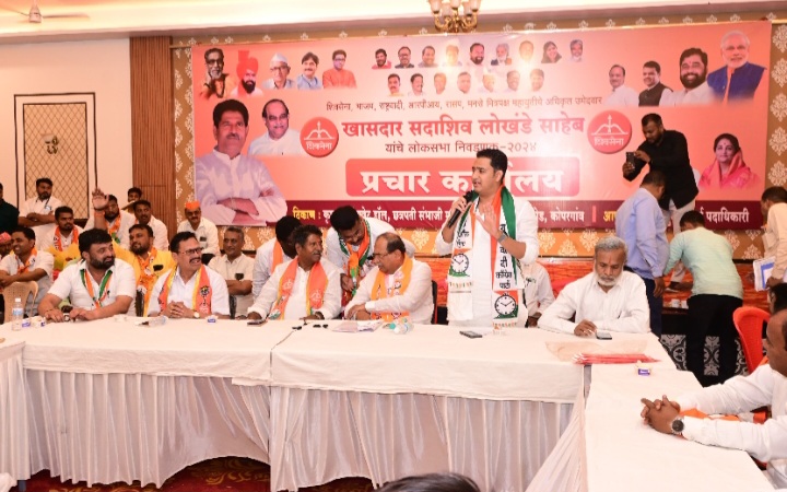 यावेळी महायुतीच्या सर्व पक्षांचे कार्यकर्ते मोठ्या संख्येने उपस्थित होते. खा.सदाशिव लोखंडे यांच्या प्रचार कार्यालयाचे उद्घाटन प्रसंगी कार्यकर्त्यांना मार्गदर्शन करतांना आ.आशुतोष काळे समवेत पालकमंत्री ना.राधाकृष्ण विखे पाटील,उमेदवार खा.सदाशिव लोखंडे व मान्यवर.