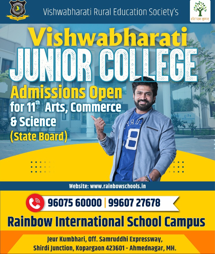 " ज्ञान दिल्याने ज्ञान वाढते, त्या ज्ञानाचे मंदिर हे... सत्य शिवाहून सुंदर हे " या सुप्रसिद्ध गीताची आठवण व्हावी,असे मूर्तिमंत दर्शन म्हणजे आधुनिक शिक्षण महर्षी लहानुभाऊ नागरे अण्णा होय. कोपरगाव तालुक्यात ज्यांना साक्षात शिक्षणाचा महामेरू म्हणून संबोधले जाते, त्या स्व. अण्णांच्या मुशीत तयार झालेले रेनबो शैक्षणिक संकुल हे नाव आज कोपरगाव शहर व तालुक्याच्या पंचक्रोशीत घराघरात पोहोचलेले आहे.आणि, याच रेनबो इंटरनॅशनल स्कूल, जेऊर कुंभारी या शाळेच्या निसर्गरम्य परिसरात ग्रामीण भागातील हुशार व होतकरू विद्यार्थ्यांसाठी नव संजीवन ठरू पाहणाऱ्या "विश्वभारती रुरल एज्युकेशन सोसायटी संचलित", विश्वभारती कला वाणिज्य व विज्ञान कनिष्ठ महाविद्यालय येणाऱ्या नवीन शैक्षणिक वर्षात विद्यार्थ्यांच्या सेवेत दाखल होत आहे. उच्चशिक्षित प्राध्यापक, आधुनिक प्रयोगशाळा, प्रदूषण मुक्त परिसर, केंद्रीय संगणकीय सुविधा, सुसज्ज सेमिनार हॉल, प्रशस्त लायब्ररी, स्मार्ट क्लासरूम, इंटरनेट कनेक्टिव्हिटी, वायफाय कॅम्पस, मुला मुलींसाठी स्वतंत्र वसतिगृह, एक्सप्रेस फिडरसह पावर बॅकअप, स्पोर्ट्स सुविधा, विद्यार्थ्यांचा सुरक्षा विमा अशा अनेक सेवा सुविधांनी युक्त हे विश्वभारती कला, वाणिज्य व विज्ञान कनिष्ठ महाविद्यालय स्पर्धेच्या युगात इतर महागड्या शैक्षणिक शुल्काच्या तुलनेत अत्यंत माफक शुल्कात विद्यार्थ्यांसाठी पर्वणी ठरणार आहे.