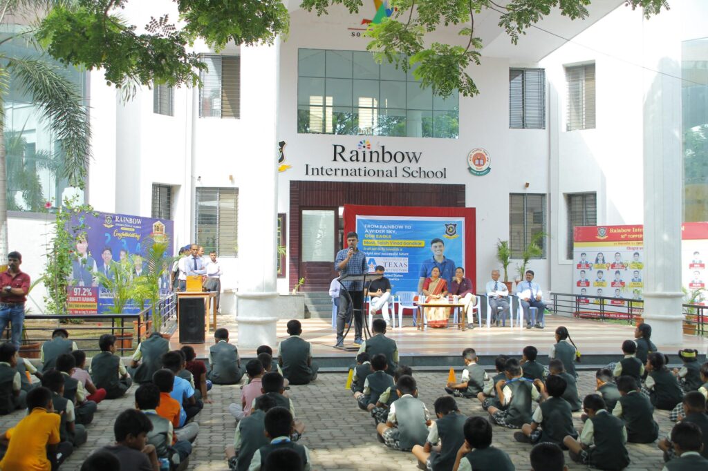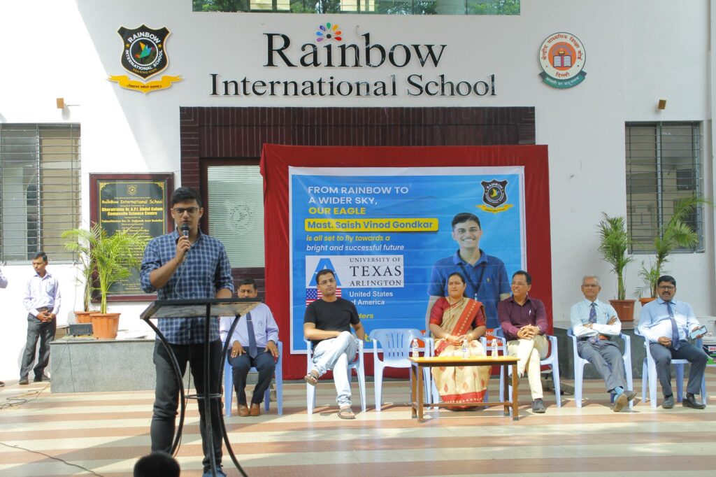 सत्काराला उत्तर देताना साईश व त्याचे पालक श्री विनोदजी गोंदकर यांनी सांगितले की, साईशने मिळवलेल्या या उत्तुंग यशात रेनबो इंटरनॅशनल स्कूलचा सिंहाचा वाटा आहे. साईश खऱ्या अर्थाने घडला व घडवला गेला, तो रेनबो शैक्षणिक संकुलातील उच्च गुणवत्तापूर्ण वातावरणात. आणि याचा आम्हाला खरोखर सार्थ अभिमान आहे. साईशच्या पुढील वाटचालीसाठी संस्थेचे अध्यक्ष मा. कांतीलालजी अग्रवाल, सचिव मा. संजयजी नागरे, विश्वस्त मा. मनोजजी अग्रवाल, मा. आनंदजी दगडे, सौ. वनिताताई नागरे आदि पदाधिकाऱ्यांनी शुभेच्छा दिल्या.