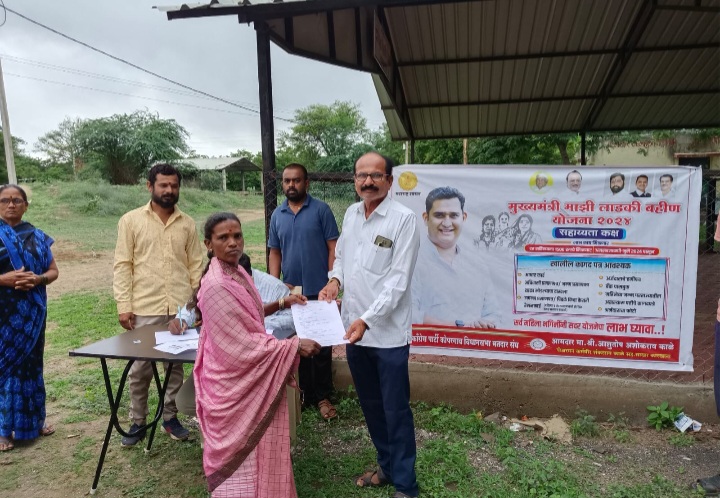 मध्यप्रदेश सरकारच्या ‘लाडली बहन’ या योजनेच्या धर्तीवर दि.१ जुलै पासून ‘मुख्यमंत्री माझी लाडकी बहीण’ योजना सुरु करण्यात आली आहे. राज्यातील करोडो महिलांना आर्थिक सहाय्य करून आर्थिकदृष्ट्या सक्षम करणे हे उद्दिष्टय आहे. या योजनेअंतर्गत राज्य सरकार लाभार्थी महिलांच्या खात्यात दरमहा १५०० रुपये पाठवणार आहे. त्यामुळे या योजनेचा लाभ सर्व महिलांना मिळावा, कुणीही महिला यापासून वंचित राहू नये यासाठी आ.आशुतोष काळे यांनी मोफत कागदपत्र मेळावा आयोजित करण्यात आला होता. या योजनेचा लाभ प्रत्येक महिलेला घेता यावा यासाठी गांव पातळीवर महिलांना कोणत्याही प्रकारची अडचण येऊ नये यासाठी आमदार आशुतोष काळे यांचे कार्यकर्ते गोदावरी खोरे केन ट्रान्सपोर्टचे संचालक दिलीप शिंदे, गौतम बँकचे संचालक बापुराव वक्ते, कल्याणराव गुरसळ, महेंद्र वक्ते, विरेंद्र शिंदे, किरण पाटीलबा वक्ते, शिवाजी मच्छिंद्र वक्ते, सागर गुरसळ, आकाश देवकर, वैभव वक्ते, रवींद्र वक्ते, मैद सर