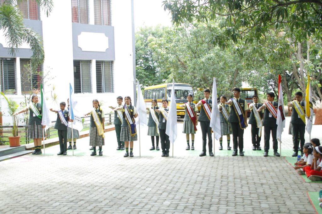 प्रमुख अतिथींचे स्वागत विद्यार्थ्यांनी मानवंदना देऊन केले. कार्यक्रमाची सुरुवात दीप प्रज्वलन व प्रतिमा पूजनाने करण्यात आली. विद्यार्थी परिषद कार्यकारिणीतील नवनियुक्त सदस्यांना मा. आनंदजी दगडे सरांच्या हस्ते बॅचेस व ध्वज देऊन सन्मानित करण्यात आले.यामध्ये, नैतिक निलेश निकुंभ ( स्कूल स्टुडन्टस रिप्रेझेंटेटिव्ह ), कु.धनश्री मनोज कदम( हेड गर्ल ), वंश वीरेंद्र जैन ( व्हॉइस हेड बॉय ), कु.अक्षिता विरेश बडजाते ( व्हॉइस हेड गर्ल ), कु. श्रद्धा दीपक वक्ते ( व्हॉइस अकेडेमिक कॅप्टन ), कु. अदिती गणेश पानसरे ( डीसिप्लिन कॅप्टन ), सोहम कमलेश लोढा ( व्हॉइस डिसिप्लिन कॅप्टन ), साई नवनाथ सोनवणे (स्पोर्ट्स कॅप्टन), कु.भक्ती बाबासाहेब पानगव्हाणे (व्हाईस स्पोर्टस कॅप्टन), कु.आर्यश्री विनायक पंडोरे( कल्चरल कॅप्टन ), कु.अंजली अनिल शिंदे( व्हॉइस कल्चरल कॅप्टन ), सुदर्शन विजय घुले ( रेड रोवर्स कॅप्टन ),कु. सई प्रशांत सूर्यवंशी( ग्रीन डॅजलर्स कॅप्टन), आदित्य संदीप दौंगे (ब्लू टायटन्स कॅप्टन / हेड प्रिफेट ), वेदांत दीपक वक्ते( येलो थंडर्स कॅप्टन) या विद्यार्थ्यांचा समावेश होता. सर्व नवनियुक्त कार्यकारणीच्या सदस्यांना संगीता काळे मॅडम यांनी पद व गोपनीयतेची शपथ दिली. विद्यार्थी प्रतिनिधींनी आपली मते मांडताना आमच्यावर सोपवलेल्या जबाबदारीची जाणीव ठेवून आमचे कर्तव्य योग्य रीतीने पार पाडू असे आश्वासन दिले. तसेच,याप्रसंगी मागील वर्षीच्या विद्यार्थी कार्यकारिणीचे मावळते सदस्य कु. पलक ठक्कर, कु. गार्गी दळवी, कु. आदिती घुले, कु. वैष्णवी गव्हाणे, शिवम सातपुते, सार्थक वाघ, देवराज देशमुख व यशराज वक्ते यांनी सबंध वर्षभर शाळेसाठी दिलेल्या योगदानाबद्दल प्रमुख अतिथींच्या हस्ते त्यांचा सन्मान करण्यात आला.