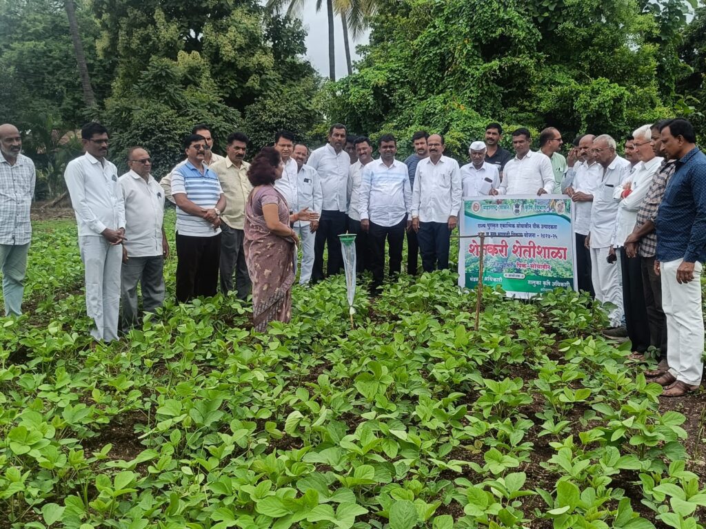 खरीप हंगामातील सोयाबीन हे एक महत्त्वाचे व चांगले उत्पन्न देणारे पीक आहे. या पिकास कृषी तंत्रज्ञानाची जोड देणे, शेतकऱ्यांना पीक अवस्थेनुसार पिकाची माहिती मिळावी, शेतकऱ्यांच्या उत्पादन आणि उत्पन्नात वाढ व्हावी यासाठी कृषी विभागाकडून शेती शाळा घेण्यात आली.