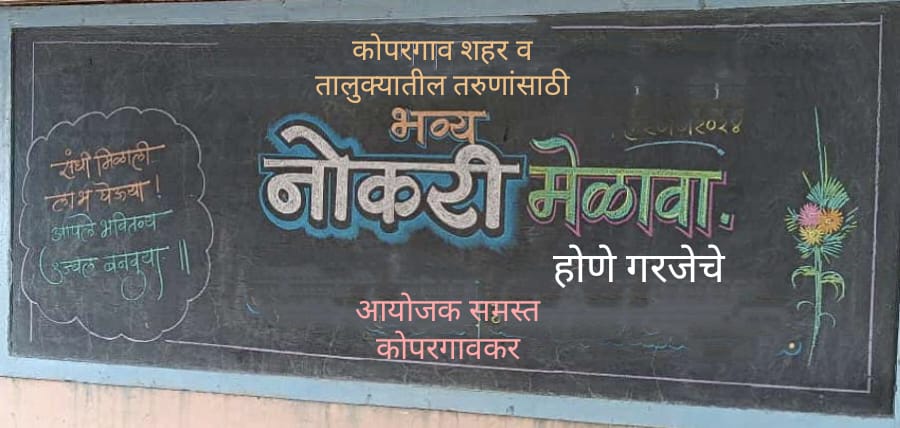 ज्याप्रमाणे दरवर्षी कोपरगाव शहर व तालुक्यातील छोट्या उद्योगांना वाव देण्यासाठी बिझनेस एक्सपो भरवला जातो , त्याचप्रमाणे जे कोपरगाव शहर व तालुक्यात जे शिकलेले बेरोजगार तरुण व तरुणीं आहेत पण त्यांना नोकऱ्या नाही त्यांना नोकरी मिळवून देण्यासाठी मोठ्या प्रमाणात नोकर भरती मेळावा, जॉब एक्सपो कोपरगाव शहरात होणे गरजेचे आहे. खूप मोठ्या प्रमाणात युवक व युवती नोकरी मिळण्यासाठी प्रयत्न करीत आहे , वाट बघत आहे. यासाठी कोपरगाव शहर व तालुक्यातील सामाजिक संघटनांनी दर दोन वर्षाला सर्वांनी एकत्र येऊन बिजनेस एक्सपो प्रमाणे नोकर भरती मेळावा , जॉब एक्सपो करावा .जेणेकरून तरुणांना रोजगार मिळेल , नोकरी मिळेल.