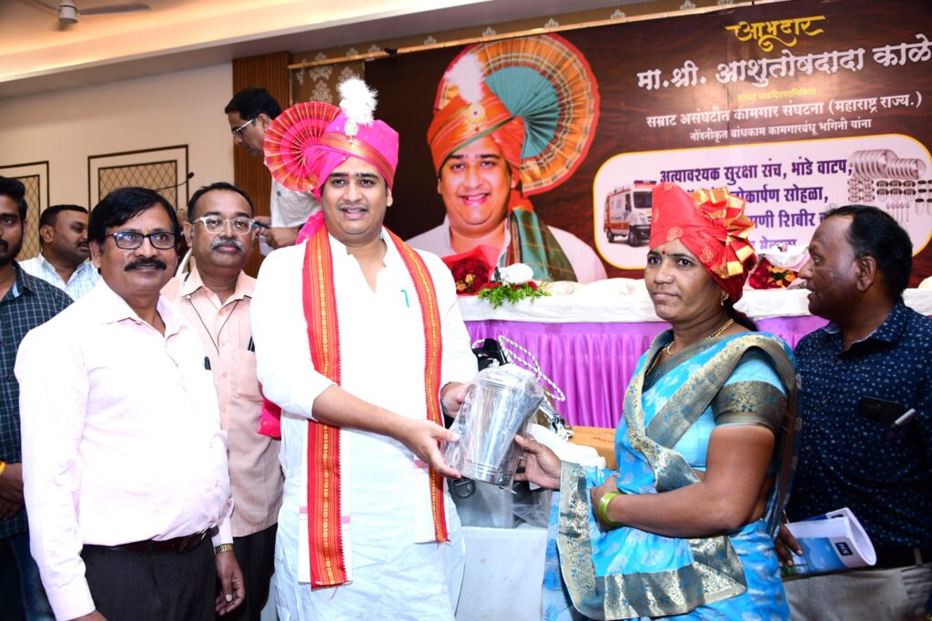 नोंदणीकृत बांधकाम कामगारांना गृहोपयोगी व बांधकाम साहित्याचे कीटचे आ. आशुतोष काळे यांच्या हस्ते वाटप करण्यात आले.