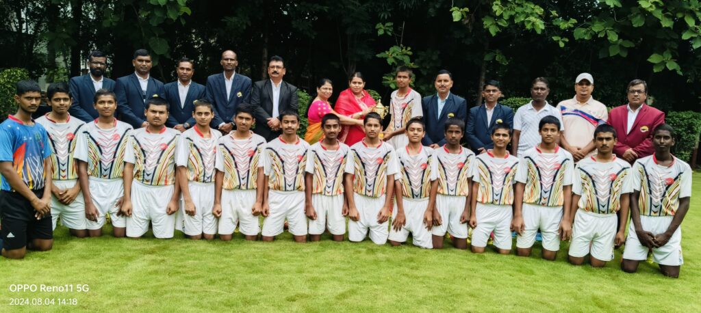 गौतम पब्लिक स्कूलच्या विजेत्या हॉकी व फुटबॉल संघांना चषक प्रदान करताना सचिव सौ. चैतालीताई काळे समवेत प्राचार्य नूर शेख, सौ. रईसा शेख, क्रीडा विभाग व हाऊस मास्टर्स.