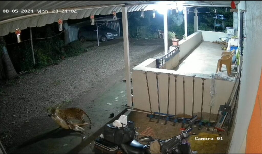 शिंदे यांच्या पाळीव कुत्र्यावर बिबट्यानाने हल्ला करून जागिच ठार केले आहे ही घटना सीसीटिव्ही मध्ये कैद झाली आहे.