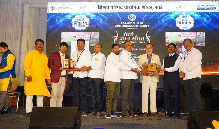 रोटरी क्लब अहमदनगर integrity आणि श्री सांदिपनी अकॅडमी अहमदनगर यांच्या संयुक्त विद्यमाने शिक्षक दिनाचे औचित्य साधुन देण्यात येणारा आदर्श विद्यालय पुरस्कार २०२४ पुरस्कार माजी शिक्षण संचालक तथा बोर्ड ऑफ डायरेक्टर रोटरी क्लब अहमदनगर दिनकर टेमकर साहेब यांचे हस्ते प्रदान करण्यात आला. सदर पुरस्कार शाळा व्यवस्थापन समितीचे अध्यक्ष संदीप बारहाते,शाळेचे मुख्याध्यापक श्याम डोळस, अमोल थिटे, लक्ष्मीकांत वाडीले यांनी पुरस्कार स्वीकारला.तसेच विद्या भूषण 2024 पुरस्कार सडे शाळेचे शिक्षक वाडीले लक्ष्मीकांत यांना श्री सांदिपनी अकादमीचे सर्वेसर्वा श्री डॉ. बालराजू के. आणि श्रीमती मीनाताई जगधने यांचे हस्ते प्रदान करण्यात आला.यावेळी डॉ बालराजू के.यांनी लिहिलेले Transforming Education या पुस्तकाचे प्रकाशन मीनाताई जगधने व इतर मान्यवरांच्या हस्ते करण्यात आले.यावेळी कार्यक्रमाला दिनकर टेमकर,श्रीमती मीनाताई जगधने, अशोक कडूस शिक्षणाधिकारी (माध्यमिक),भास्कर पाटील शिक्षणाधिकारी (प्राथमिक)बाळासाहेब बुगे शिक्षणाधिकारी (योजना), डॉ. बालराजू के, डॉ.चीतगोपेकर,नितीन कुलकर्णी,प्रियंका चिखले(दिव्य मराठी चे माय एफ एम हेड)आदी मान्यवर उपस्थित होते.जिल्हा परिषद प्राथमिक सडे शाळेला कोपरगाव तालुक्याच्या गट शिक्षणाधिकारी शबाना शेख मॅडम,वारी केंद्राचे केंद्रप्रमुख विलास भांड यांचे मार्गदर्शन लाभले.खाजगी शाळांशी स्पर्धा करताना सडे शाळेने मिळवलेल्या पुरस्काराने शेख मॅडम यांनी समाधान व्यक्त केले.आशाताई बारहाते,मीराताई बारहाते,गणेश बारहाते,संदीप बारहाते,रामभाऊ बारहाते, संतोष बारहाते ,नानासाहेब बारहाते,लतिफ पठाण सर यांचे मोलाचे सहकार्य लाभले.