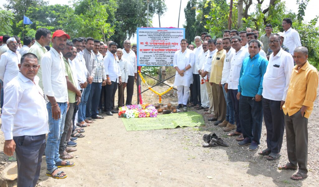 त्यावेळी उपस्थित कार्यकर्त्यांनी २०१९ ते २०२४ या पाच वर्षात कोपरगाव मतदार संघाचा जो विकास झाला तो विकास आजवर कधीच झालेला नाही. यामध्ये पूर्व भागाचा देखील समावेश असून संवत्सर गाव देखील अपवाद नाही. जनता विकासावर समाधानी असून येणाऱ्या विधानसभा निवडणुकीत मोठ्या मताधिक्याने आ.आशुतोष काळे पुन्हा आमदार होतील अशी ग्वाही देवून त्यासाठी सर्व कार्यकर्ते प्रयत्न करणार असल्याचे कार्यकर्त्यांनी यावेळी सांगितले. याप्रसंगी राष्ट्रवादी, काँग्रेस पक्षाचे पदाधिकारी व कार्यकर्ते, कर्मवीर शंकरराव काळे सहकारी साखर कारखाना व संलग्न संस्थांचे पदाधिकारी, विविध क्षेत्रातील मान्यवर व ग्रामस्थ मोठ्या संख्येने उपस्थित होते. संवत्सर (दशरथवाडी) ते दहेगाव रस्त्याच्या डांबरीकरण कामाचे भूमिपूजन प्रसंगी आ.आशुतोष काळेव मान्यवर.