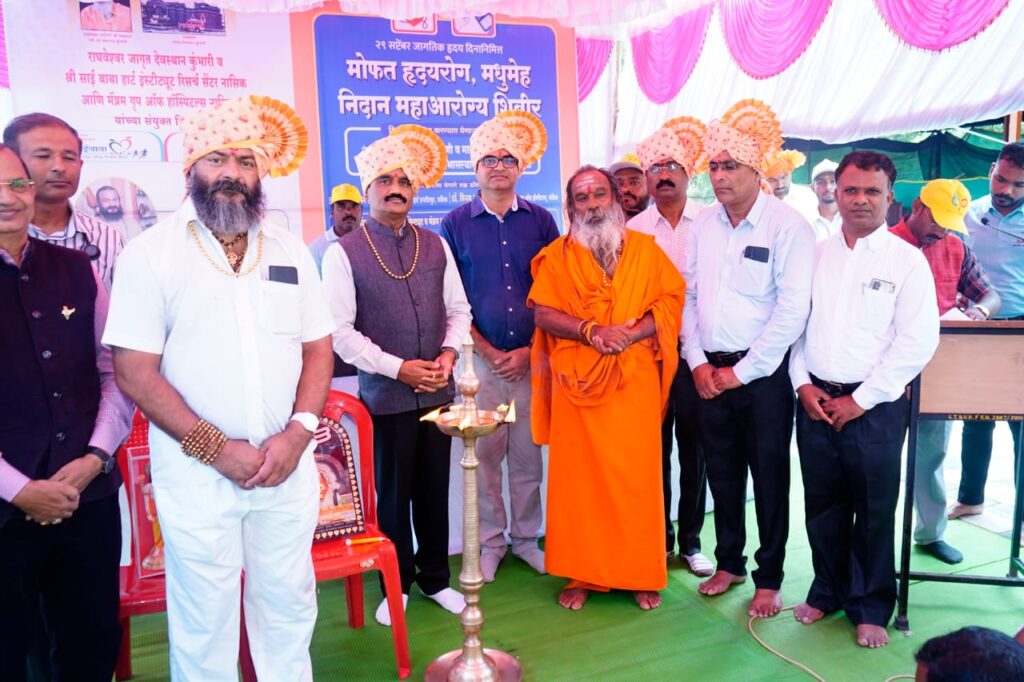 जागतिक हृदय रोग दिनानिमित्त राघवेश्वर जागृत देवस्थान कुंभारी व नाशिक येथील श्री साईबाबा हार्ट इन्स्टिट्यूट रिसर्च सेंटर आणि मॅग्नम ग्रुप ऑफ हॉस्पिटल यांच्या संयुक्त विद्यमाने आयोजित मोफत हृदय रोग व मधुमेह निदान शिबिर राघवेश्वर जागृत देवस्थानचे मठाधिपती राघवेश्वरानंदगिरी महाराज यांच्या अध्यक्षतेखाली संपन्न झाले. त्या वेळी ते बोलत होते.