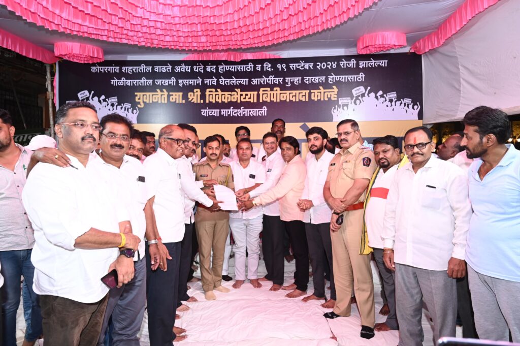 कोपरगांव शहरातील अवैध व्यवसाय त्वरीत बंद व्हावे. तसेच १९ सप्टेंबर २०२४ रोजी शहरात झालेल्या गोळीबारातील जखमी इसमाने आमदार काळे व त्यांचे स्विय्य सहाय्यक जोशी यांचे नाव घेतले होते त्याबद्दल सखोल चौकशी व्हावी यासाठी दत्ता काले,विजय आढाव,बबलू वाणी,विनोद राक्षे,संदीप देवकर यांनी आमरण उपोषण पुकारले होते.गांधी जयंतीच्या निमत्ताने छत्रपती शिवाजी महाराज स्मारकासमोर अन्नत्याग करत मागण्या मान्य करण्याची मागणी पोलीस प्रशासनाकडे केली. यावेळी डीवायएसपी शिरीष वमने,युवानेते विवेकभैय्या कोल्हे,पोलीस निरीक्षक भगवान मथुरे यांनी उपोषणकर्त्यांचे म्हणणे जाणून घेत मागणीनुसार गोळीबार घटनेतील आमदार व त्यांचे स्विय्य सहाय्यकांवर झालेल्या आरोपांची सखोल चौकशी व अवैध धंदे बंद होण्यासाठी कार्यवाही करू असे सूचित केल्यानंतर उपोषण सोडण्यात आले.सध्या सुरू असलेले चक्री, बिंगो, गांजा विक्री, कुत्ता गोळी, रेशन काळा बाजार आणि अवैध शस्त्र कारखाना असे अनेक अवैध व्यवसाय शहरात वाढले आहे. त्यातूनच व्यसनाधिनता वाढत चालली आहे. व्यसनामुळे टोकाची गुन्हेगारी फोफावली असुन खुन,मारामाऱ्या,चोऱ्या,महिला छेडछाड हे प्रकार देखील वाढीस लागत आहे. वाढत्या गुन्हेगारीमुळे सामान्य नागरिक दहशतीमध्ये असून भीतीचे वातावरण अनेकांमध्ये असल्याच्या नागरिकांमधून भावना व्यक्त झाल्या.भयावह दहशतीमुळे कोपरगांव शहराच्या बाजारपेठेवर विपरीत परिणाम होत आहे.सोने चोरीसारखे अनेक गुन्हे अलीकडच्या काळात घडले व पुरावे असून त्याचा छडा अद्याप लागला नाही.अल्पवयीन युवक व्यसन आणि गुन्हेगारीकडे मोठ्या संख्येने वळले असून यामागे राजकीय वरदस्ताने अवैध व्यवसाय सुरू असल्याचे समोर येत आहेत अशी भूमिका कोल्हे कारखान्याचे अध्यक्ष युवानेते विवेकभैय्या कोल्हे यांनी व्यक्त केली. वेळीच वाढती गुन्हेगारी रोखली जावी. आपल्या शहराचे आणि तालुक्याची ही संस्कृती नाही मात्र राजकीय आश्रयामुळे असे प्रकार दिवसेंदिवस वाढीस लागले आहे. एक गावठी कट्टा दोन अलीकडे दिवसात सापडला,विविध ठिकाणी खून,मारामाऱ्या,दरोडे,छेडछाड असे प्रकार दिवसेंदिवस समोर येत आहे. गोळीबार प्रकरणातील जखमी व्यक्तीने आरोप केलेल्या व्हिडिओतील नावांची चौकशी होऊन त्यांचे फोन कॉल डिटेल्स सी डी आर तपासून चौकशी होण्याची जी मागणी उपोषणकर्त्यांनी केली आहे त्याची पोलीस प्रशासनाने दखल घ्यावी. आम्ही घटना घडल्या बरोबर आपल्याला निवेदन दिले आहे त्याला दहा दिवस उलटून जाऊन अद्यापही सर्व नावांची चौकशी झालेली नाही अशी भावना नागरिकांची असल्याने पोलिसांनी कुठल्याही दबावात न येता निपक्षपणे या घटनेचा सखोल तपास करावा असेही कोल्हे म्हणाले.