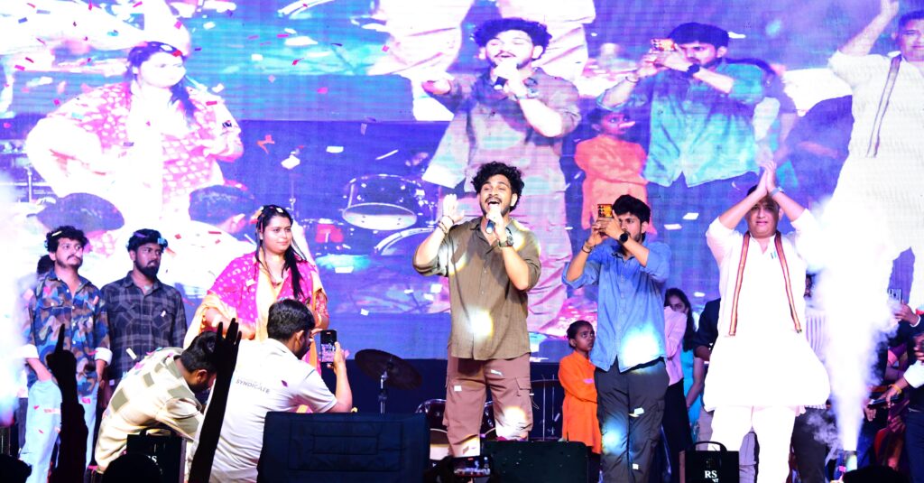 कोपरगाव शहरातील डॉ.बाबासाहेब आंबेडकर मैदानावर प्रियदर्शनी इंदिरा महिला मंडळ व आ. आशुतोष काळे यांच्या वतीने नवरात्रौत्सवानिमित्त आयोजित करण्यात आलेल्या ‘जागर स्त्री शक्तीचा’ नवरात्र उत्सव कार्यक्रमा अंतर्गत आयोजित करण्यात आलेल्या भव्य दांडिया स्पर्धेला महिलांचा उस्त्फुर्त प्रतिसाद मिळाला. यावेळी दांडिया स्पर्धेचे मुख्य आकर्षण असलेला गुलाबी साडी फेम संजू राठोड यांच्या गुलाबी साडी– या गाण्यावर उपस्थित हजारो महिलांनी चांगलाच ठेका धरला होता.प्रियदर्शनी इंदिरा महिला मंडळ व आ.आशुतोष काळे यांच्या वतीने यावर्षी नवरात्र महोत्सव भव्य दिव्य पद्धतीने साजरा करतांना भव्य दांडिया स्पर्धेचे आयोजन करण्यात आले असून हि स्पर्धा रविवार (दि.०६) व सोमवार (दि.०७) रोजी दोन दिवस घेण्यात आली. या स्पर्धेसाठी रविवार (दि.०६) रोजी गुलाबी साडी फेम संजू राठोडला निमंत्रित करण्यात आले होते. यावेळी लहान गट व खुल्या गटातील दांडिया स्पर्धकांनी अतिशय तालबद्ध पद्धतीने दांडिया खेळाचे प्रदर्शन करून उपस्थितांची मने जिंकून घेतली. तर या दांडिया स्पर्धेचा मुख्य आकर्षण असलेला संजू राठोड ने ‘गुलाबी साडी आणि लाली लाल लाल…दिसते मी भारी राजा फोटो माझा काढ’ व ‘नऊवारी साडी’या गाण्यावर आपल्या जादुई आवाजाने उपस्थित हजारो महिलांना ताल धरायला लावला.सिनेसृष्टीत आपल्या जिद्दीच्या जोरावर स्थान निर्माण करणारा गायक संजू राठोडने नवनवीन गाण्यांमुळे अल्पावधीतच प्रसिद्धीच्या शिखरावर पोहोचला असून त्याच्या कित्येक गाण्यांनी सर्व प्रेक्षकांना अक्षरश:भुरळ घातली आहे. त्याच संजू राठोडला पाहण्यासाठी व ‘गुलाबी साडी’ हे गाणं ऐकण्यासाठी डॉ. बाबासाहेब आंबेडकर मैदानावर महिलांनी मोठी गर्दी केल्याचे पाहायला मिळाले.यावेळी आ.आशुतोष काळे व सौ.चैतालीताई काळे यांनी देखील गुलाबी साडीच्या गाण्यावर ताल धरत दांडिया स्पर्धक व उपस्थित महिलांचा उत्साह वाढविला.