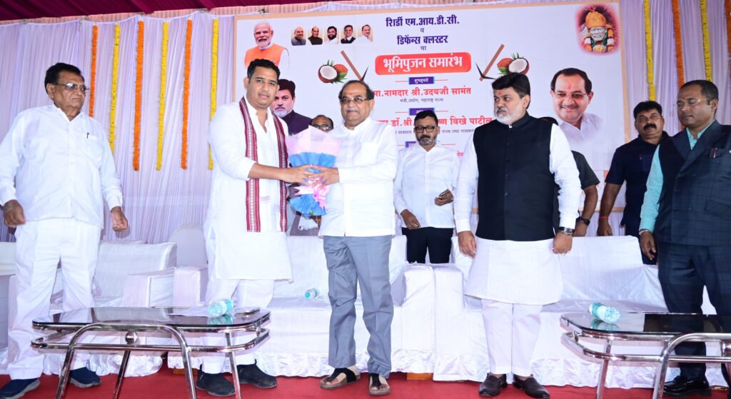 शनिवार (दि.१२) रोजी दसऱ्याच्या शुभ मुहूर्तावर सावळीविहिर-सोनेवाडी शिवारात होणाऱ्या शिर्डी एम.आय.डी.सी. व डिफेन्स क्लस्टरचा भूमिपूजन समारंभ महसूलमंत्री ना.राधाकृष्ण विखे पाटील यांच्या अध्यक्षतेखाली व उद्योगमंत्री ना. उदयजी सामंत यांच्या शुभहस्ते संपन्न झाला. यावेळी आ.आशुतोष काळे यांनी कोपरगाव मतदार संघाचा लेखाजोखा मांडतांना उद्योग व्यवसायाच्या देखील समस्या मांडून त्यांनी कोपरगाव मतदार संघातील मूलभूत सुविधा बरोबरच रोजगार निर्मिती व व्यावसायिकांना चांगल्या सुविधा मिळून मोठे उत्पादन वाढीसाठी जागा कमी पडत असल्याचे उपस्थित मंत्री महोदयांच्या निदर्शनास आणून दिले.