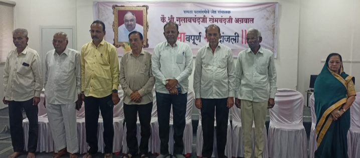 समता नागरी सहकारी पतसंस्थेचे जेष्ठ व श्रेष्ठ संचालक गुलाबचंद खेमचंद अग्रवाल यांना भावपूर्ण श्रद्धांजली समता परिवाराच्या वतीने वाहण्यात आली. त्या वेळी ते बोलत होते.