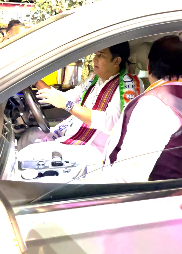 विधानसभा निवडणुकीच्या निमित्ताने आ.आशुतोष काळेंच्या प्रचारार्थ आयोजित करण्यात आलेल्या प्रचार सभेसाठी उपमुख्यमंत्री ना.अजितदादा पवार हे गुरुवार (दि.१४) रोजी कोपरगाव येथे आले होते. एस.एस.जी. एम.कॉलेजच्या मैदानावर तयार करण्यात आलेल्या हेलीपॅडवर त्यांच्या हेलिकॉप्टरचे लँडिंग होवून त्यांनी हेलिकॉप्टरमधून मधून उतरताच गाडीत बसून येसगावच्या दिशेने कोल्हे वस्तीकडे प्रयाण करून कोल्हे परिवाराची सदिच्छा भेट घेतली यावेळी या प्रवासादरम्यान आ.आशुतोष काळे यांनी स्वत: त्यांच्या गाडीचे सारथ्य केले.