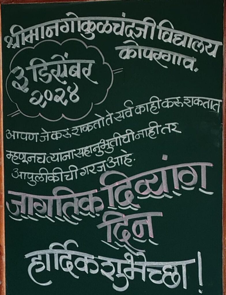 श्रीमान गोकुळचंदजी विदयालयांत जागतिक दिव्यांग दिन उत्साहाने संपन्न झाला.