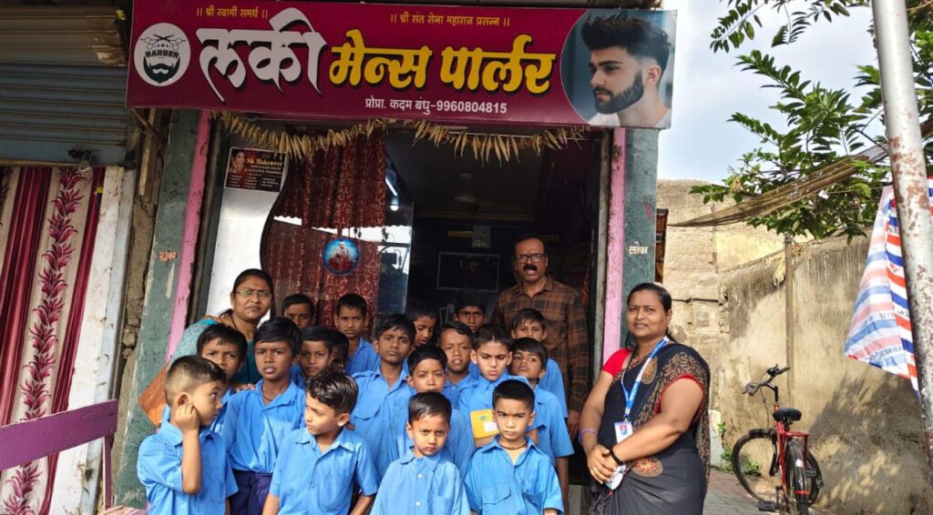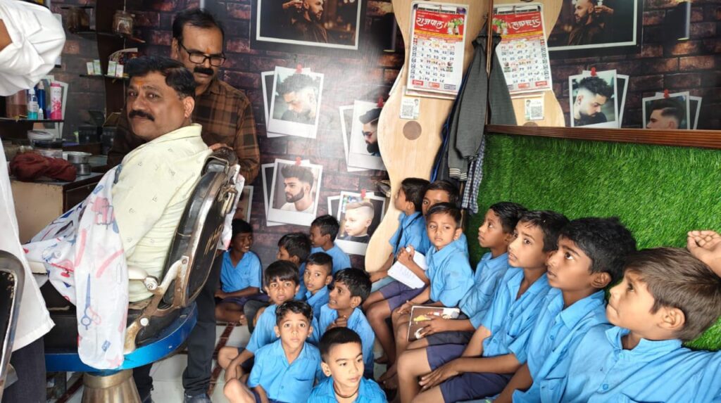 नगरपालिका शाळा क्रं.६ च्या विद्यार्थ्यांनी नुकतीच व्यवसायिकांची मुलाखत या उपक्रमा अंतर्गत लकी मेन्स पार्लर चे मालक सुरेश कदम यांची मुलाखत घेतली. सुरेश कदम यांचे कोपरगाव मध्ये लकी मेन्स पार्लर हे दुकान असून ते कोपरगावकरांना उत्तम सेवा देतात. इयत्ता पाचवीच्या वर्गशिक्षिका सुनिता इंगळे यांनी त्यांच्याशी संपर्क साधून मुलांना व्यवसायाबद्दल माहिती देण्याची विनंती केली. त्यांनी या गोष्टीला लगेच होकार कळवून मुलांना अवश्य घेऊन या असे सांगितले. विद्यार्थी दुकानावर गेल्यानंतर विद्यार्थ्यांनी त्यांना अनेक कुतूहल पूर्ण प्रश्न विचारले. त्यात तुमचे नाव काय आहे?तुमचे शिक्षण किती झाले आहे? तुम्ही हा व्यवसाय किती वर्षापासून करता? हा व्यवसाय करताना तुम्ही किती वेळ काम करता?तुमच्या दुकानांमध्ये किंवा इतर दुकानातही दोन्ही बाजूला आरसे का लावलेले असतात? या व्यवसायासाठी लागणारी साधने तुम्ही कुठून विकत घेता ? तुम्हाला हे काम करायला मनापासून आवडते का? एका दिवसाला तुम्हाला किती रुपये मिळतात ? नोकरी आणि व्यवसायामध्ये काय फरक वाटतो?असे कितीतरी प्रश्न मुलांनी विचारले. श्री. सुरेश कदम यांनी त्यांना अगदी समर्पक उत्तरे देत हसत खेळत वातावरणात दिली.या व्यवसायात त्यांचे मावसबंधू सुहास जगताप हे ही त्यांना कामात मदत करतात. कोणतेही काम कमीपणाचे नसते कष्ट केले तर त्यात नक्की यश मिळते. हा संदेशही द्यायला सुरेश कदम विसरले नाहीत. प्रत्येक शाळेमधून मुलांना शाळेबाहेरचे दैनंदिन अनुभव,विविध दुकानांच्या भेटी व्यावसायिक कौशल्य,अनुभवा आधारित शिक्षण मिळायला हवे असेही त्यांनी आवर्जून सांगितले. प्रश्न विचारणाऱ्या सर्वांचे त्यांनी मनापासून कौतुक केले. व माझ्या दुकानात सर्वांनी नक्की या असे आमंत्रणही दिले. या उपक्रमामध्ये इयत्ता दुसरी ते पाचवीच्या विद्यार्थ्यांनी सहभाग घेतला होता. इयत्ता दुसरीच्या वर्गशिक्षिका अनुराधा सोमासे यांचीही या उपक्रमासाठी मोलाची साथ लाभली. शाळेचे प्रभारी मुख्याध्यापक श्री माणिक कदम यांचे मार्गदर्शन मिळाले. या उपक्रमाचे शाळेच्या मुख्याध्यापिका सविता साळुंके, शालेय व्यवस्थापन समितीचे अध्यक्ष अर्चना वाहूळकर, पालक, ज्या दुकानदारांना भेटी दिल्या त्यांचे मालक व तेथे आलेले सर्व ग्राहक यांनी मनापासून कौतुक केले.