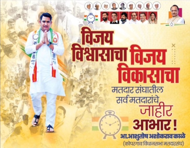 कोपरगाव विधानसभा मतदार संघाचे आ.आशुतोष काळे यांना पार पडलेल्या विधानसभा निवडणुकीत राज्यात सर्वाधिक पाच नंबरचे मताधिक्य मिळाले असून ते तब्बल १ लाख २४ हजार ६२४ मतांनी निवडून आले आहे. हे मताधिक्य अहिल्यानगर जिल्ह्यातील निवडून आलेल्या १२ आमदारांमध्ये नंबर एकचे आहे. जिल्ह्यात आघाडीवर असणाऱ्या कर्मवीर शंकरराव काळे सहकारी साखर साखर कारखान्याची धुरा सांभाळतांना माजी आ.अशोकराव काळे यांच्या मार्गदर्शनाखाली त्यांनी आपल्या नेतृत्व व बुद्धी कौशल्यातून कारखाना तोटामुक्त करून दाखविला आहे.त्याचबरोबर साखर कारखान्यांच्या यंत्रसामुग्री व तंत्रज्ञानात मोठ्या प्रमाणात झालेला बदल स्विकारून स्टीम सेव्हिंग, बगॅस बचत व उच्च प्रतीची साखर निर्माण करून साखर उत्पादन खर्च कमी करण्यासाठी कारखान्याच्या स्थापनेपासून जवळपास ६३ वर्षाच्या कारखान्याचे दोन टप्प्यात आधुनिकीकरणाचे काम पूर्ण केले. नवीन यंत्र सामुग्रीच्या माध्यमातून त्यांच्या नेतृत्वाखाली कारखाना प्रगतीच्या दिशेने वाटचाल करीत आहे.आ. आशुतोष काळे उच्च शिक्षित असून त्यांच्याकडे विकासाचे व्हिजन आहे. मागील पाच वर्षांत, त्यांनी मतदारसंघाच्या सर्वांगीण विकासासाठी उत्कृष्ट कामगिरी बजावली असून त्यामागे उपमुख्यमंत्री ना. अजित पवार यांची विशेष भूमिका आहे. आ.आशुतोष काळे यांनी नुकतीच दुसऱ्यांदा विधानसभा सदस्य म्हणून शपथ घेतली आहे. तत्पूर्वी राज्याचे मुख्यमंत्री म्हणून ना. देवेंद्रजी फडणवीस व उपमुख्यमंत्री म्हणून ना. अजितदादा पवार व ना. एकनाथजी शिंदे यांनी शपथ घेतली असून लवकरच मंत्रीमंडळाचा विस्तार होणार आहे. त्या पार्श्वभूमीवर मतदारसंघाचा सर्वांगीण विकास आणि जनतेला दिलेल्या आश्वासनांची पूर्तता करण्यासाठी त्यांनी अनेक महत्त्वाची पावले उचलली आहेत.या कामांसाठी त्यांना मतदार संघातील नागरिक आणि कार्यकर्त्यांकडून चांगली साथ मिळत आहे.आ.आशुतोष काळे यांच्या ऐतिहासिक कामगिरीमुळे त्यांना महाराष्ट्राच्या मंत्रिमंडळात स्थान मिळावे अशी अपेक्षा त्यांच्या समर्थकांमध्ये आहे. त्यांची जन्मभूमी असलेल्या माहेगाव देशमुख ग्रामस्थांनी आ. आशुतोष काळे यांना मंत्रिमंडळात स्थान मिळावे म्हणून ग्रामदैवत अमृतेश्वर महादेव चरणी महाभिषेक करून ग्रामस्थांनी प्रार्थना केली.यावेळी माहेगाव देशमुखचे ग्रामस्थ मोठ्या संख्येने उपस्थित होते.