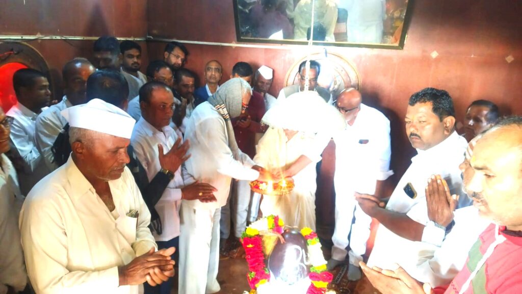 आ. आशुतोष काळे यांना मंत्रीपद मिळावे यासाठी ग्रामदैवत अमृतेश्वरास महाभिषेक करतांना माहेगाव देशमुख ग्रामस्थ.