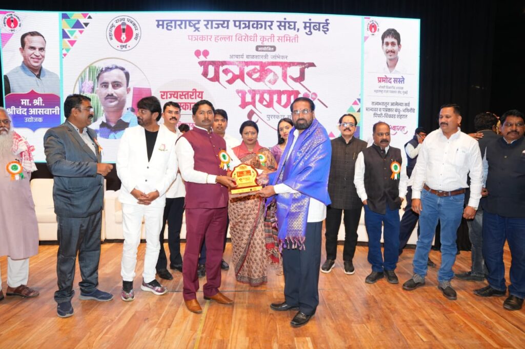 महाराष्ट्र राज्य पत्रकार संघ, मुंबई व पिंपरी चिंचवड शहर पत्रकार हल्ला विरोधी कृती समिती यांच्यावतीने देण्यात येणारा आचार्य बाळशास्त्री जांभेकर "पत्रकार भूषण" राज्य स्तरीय पुरस्कार कोपरगाव तालुक्यातील ज्येष्ठ पत्रकार जनार्दन जगताप यांना मान्यवरांच्या उपस्थितीत नुकताच पुणे येथे प्रदान करण्यात आला.दि.६ जानेवारी रोजी पत्रकार दिनानिमित्त पुणे येथील ग.दि.माडगुळकर सभागृहामध्ये आयोजित कार्यक्रमात प्रसिद्ध अभिनेते किरण माने, राज्य पत्रकार संघाचे संघटक संजय भोकरे, प्रदेशाध्यक्ष वसंत मुंडे,सरचिटणीस डॉ.विश्वास आरोटे, एबीपी माझाच्या संपादिका सरिता कौशिक, न्यूज १८ लोकमत चे आऊटपुट एडिटर अमित मोडक, बी.बी.सी. मराठीचे संपादक अभिजीत कांबळे, लोकमतचे कार्यकारी संपादक सचिन जवळकोटे, झी २४ तास चे संपादक कमलेश सुतार, आदींच्या प्रमुख उपस्थितीत उत्कृष्ट पत्रकारिता पुरस्कार प्रदान करण्यात आला.