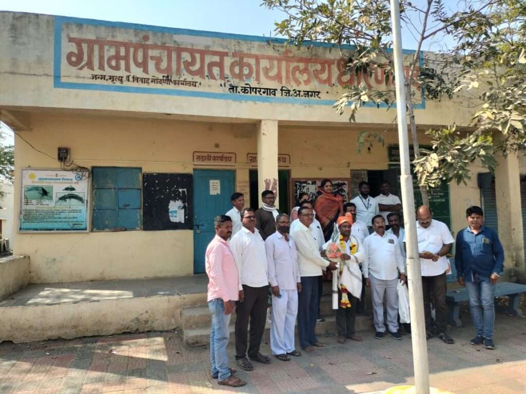 या प्रसंगी मा उपसरपंच गणेश थोरात यांचा सत्कार केला व नवीन उपसरपंच यांचाही सत्कार करून पुढील वाटचालीस शुभेच्छा दिल्या. या वेळी सहकार महर्षी शंकरराव कोल्हे कारखान्याचे माजी उपाध्यक्ष रमेश घोडेरा,माजी संचालक दगुराव चौधरी, लोकनियुक्त सरपंच वरूणा दीपक चौधरी,नानासाहेब थोरात,सोपानराव वहाडणे,तंटामुक्तीचे अध्यक्ष सोमनाथ वहाडणे, सोसायटी संचालक तुकाराम रणशूर, मा उपसरपंच दशरथ मोरे,संदीप चौधरी,दिपक सुरे,ग्रामपंचायत सदस्य, सर्व श्री संदीप थोरात, सौ कविता संतोष चौधरी, गणेश थोरात,अण्णासाहेब रणशुर,कु मोहिनी विठ्ठल मोरे, सौ माधुरी सुरज रणशूर, सौ.पुष्पा मच्छिंद्र जाधव, सौ सोनल सुदर्शन कुहिटे, ग्राम अधिकारी पूनम अहिरे यांचे सह अनेक कार्यकर्ते व ग्रामस्थ उपस्थित होते.