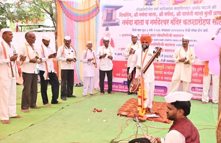 शहरातील शांतीनगर भागात झालेल्या श्री नर्मदा माता श्री गणेश, श्री पार्वती व नर्मदेश्वर महादेव मंदिराचा कलश रोहन सोहळा, प्राणप्रतिष्ठापना प्रसंगी आयोजित केलेल्या जाहीर हरी कीर्तनात केले आहे.