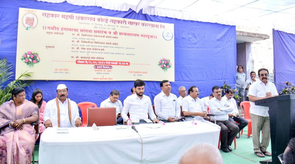 सहकारमहर्षी शंकरराव कोल्हे सहकारी साखर कारखान्याच्या ६२ व्या गळीत हंगामाची सांगता संजीवनी उद्योग समुहाचे अध्यक्ष श्री. बिपीनदादा कोल्हे यांचे प्रमुख उपस्थितीत तर युवा अध्यक्ष श्री. विवेकभैय्या कोल्हे, उपाध्यक्ष श्री. राजेंद्र कोळपे, ज्येष्ठ नेते श्री. दत्तात्रय कोल्हे, संचालक श्री. रमेश व सौ. छायाताई घोडेराव या उभयतांच्या हस्ते रविवारी झाली त्याप्रसंगी ते अध्यक्षपदावरून बोलत होते. संचालक श्री. रमेश घोडेराव यांचा सपत्नीक श्री. बिपीनदादा कोल्हे यांच्या हस्ते यावेळी सत्कार करण्यांत आला. प्रारंभी मॅनेजिंग डायरेक्टर श्री. बाजीराव जी. सुतार यांनी उपस्थितांचे स्वागत करत माजीमंत्री स्व. शंकररावजी कोल्हे साहेब यांचे तृतीय पुण्यस्मरणानिमीत्त त्यांच्या आठवणींना उजाळा दिला. माजीमंत्री स्व. शंकरराव कोल्हे यांच्या तिस-या पुण्यतिथीनिमीत्त कारखाना कार्यस्थळावर सर्व मान्यवरांच्या उपस्थितीत त्यांच्या प्रतिमेचे पुजन करण्यांत आले. पुण्यतिथी ते जयंतीनिमीत्त साध्वी सोनालीदिदी कर्पे यांच्या रसाळवाणीतुन तहसिल कार्यालय मैदान कोपरगांव येथे (१६ मार्च पासुन) दररोज सायंकाळी ७ ते १० विविध संत महंतांच्या उपस्थितीत श्रीरामकथेचे आयोजन केले असुन २३ मार्च रोजी काल्याच्या किर्तनांने त्याची सांगता तर कोपरगांव पंचक्रोशी सह परिसरात २४ मार्च हा स्व. शंकरराव कोल्हे यांचा जन्मदिन एक प्रेरणादिन म्हणून विविध उपक्रमांसह सर्वांनी साजरा करावा अशी माहिती कोपरगाव औद्योगिक वसाहतीचे उपाध्यक्ष श्री. केशव भवर यांनी दिली. श्री. बिपीनदादा कोल्हे पुढे म्हणाले की, शेतक-यांच्या एफआरपीत केंद्राने जशी वाढ केली त्याचधर्तीवर साखर विक्री दरात व ज्युस पासुन तयार होणा-या इथेनॉल दरात केंद्र व राज्य शासनाने तात्काळ वाढ करून साखर उद्योगाला दिलासा द्यावा अन्यथा देशातील साखर कारखान्यांचे तोटे वाढुन त्याची झळ सर्वच शेतक-यांना बसेल. सहकारमहर्षी शंकरराव कोल्हे सहकारी साखर कारखान्याच्या ६१ वर्षाच्या इतिहासात प्रत्येक संघर्षावर मात करत यंदाचा ६२ वा हंगाम सभासद उस उत्पादक शेतकरी, कष्टकरी, आदिंच्या सहकार्याने यशस्वीरित्या पार पडला आहे, ए आय तंत्रज्ञान, उपग्रहाच्या सहायांने उस उत्पादन वाढ, तोडणी ते गाळप आदि प्रत्येक टप्प्याची अद्यावत अंमलबजावणी सहकारमहर्षी शंकरराव कोल्हे सहकारी साखर कारखान्यात होत असुन त्याचा उस उत्पादक सभासद शेतक-यासह परिसराला फायदा होतो आहे, पुढील हंगामात साडेआठ लाख टन उसाचे गाळप करण्यासाठी जेथे जेथे आधुनिकीकरण आवश्यक आहे त्याबाबत वेळीच निर्णय घेवुन त्याचे नियोजन पुर्ण करू, त्याचबरोबरच ड्रोनच्या सहाय्याने खतमात्रेसह पीकावरील किडींचे समुळ उच्चाटनासाठी ज