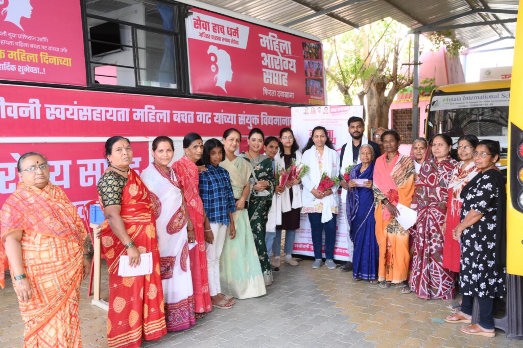 दिनांक १५ मार्च – महिलांच्या आरोग्याच्या दृष्टीने विद्यमान काळात काळजी घेणे अतिशय महत्त्वाचे बनले आहे. कौटुंबिक जबाबदारी पार पाडताना महिलांचे स्वतःच्या आरोग्याकडे होणारे दुर्लक्ष हे भविष्यातील आरोग्यसमस्या बनू नये यासाठी जागतिक महिला दिनाला मा.आ.सौ.स्नेहलताताई कोल्हे यांच्या हस्ते एस.एस.जी.एम कॉलेज येथे मोफत फिरता दवाखाना अंतर्गत कोल्हे यांनी ८ तारीख ते १६ तारीख असा महिला आरोग्य सप्ताह सुरू केला होता. कोपरगाव शहरात आरोग्य तपासणी सुरू असताना संजीवनी महिला बचत गटाचे अध्यक्षा सौ.रेणुकाताई कोल्हे यांनी भेट देऊन महिलांची आस्तेवाईकपणे विचारपूस केली.