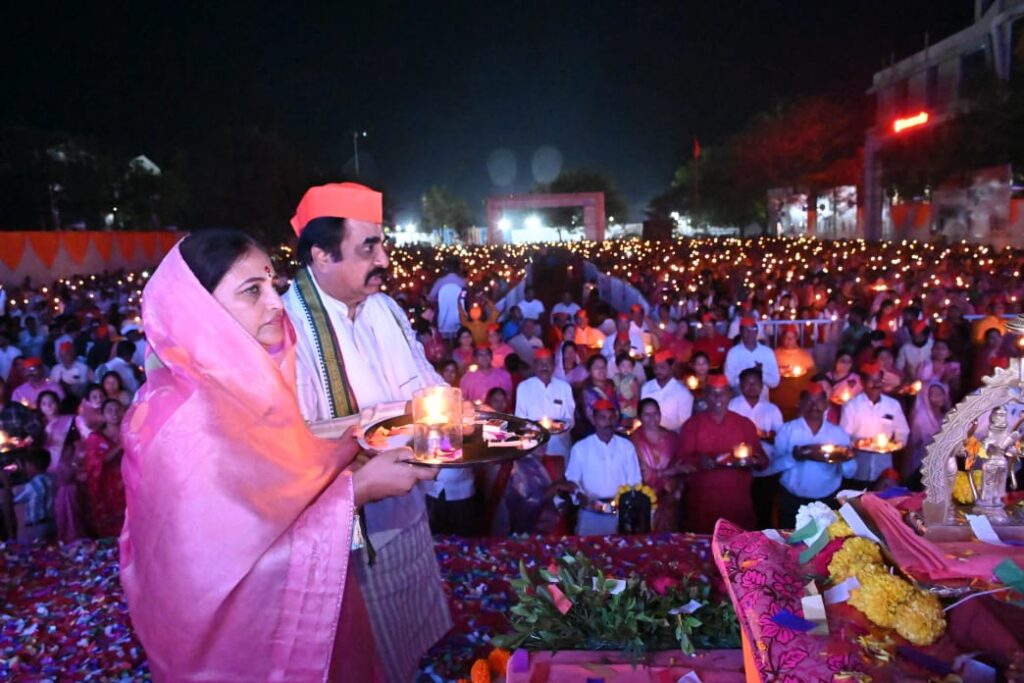 महंत नारायणगिरी महाराज यांच्या पुण्यतिथी निमित्त प्रतिमेचे पूजन व्यासपीठावर पार पडले, माजी आमदार स्नेहलता कोल्हे व संजीवनी उद्योग समूहाचे अध्यक्ष बिपीनदादा कोल्हे, श्रीमती सिंधुताई कोल्हे यांच्या हस्ते रामायणग्रंथाचे व गुजरात येथील लड्डू गोपाल गोशाळेचे संस्थापक परमपूज्य महंत हरी जीवनदास शास्त्री तसेच डॉ. यशराज महानुभाव, ब्रह्मकुमारी सरलादीदी, ह. भ. प. सुभाष महाराज जगताप, संगीताताई चव्हाण, लताताई महानुभाव, दत्तराज महानुभाव, सोमनाथ भगत (कसारा मुंबई) श्री. शेळके (संभाजीनगर), अण्णा शास्त्री(गुजरात) आदी विविध संत महंतांचे पुजन झाले.