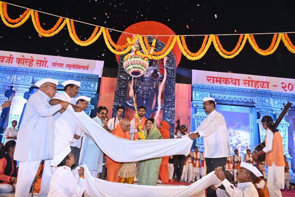 महामंडलेश्वर काशिकानंद महाराज याप्रसंगी बोलतांना म्हणांले की, कोल्हे परिवारांने श्रीरामकथेचे यशस्वी आयोजन करून कोपरगांवात पंढरीचा महिमा भरविला आहे. स्व. शंकरराव कोल्हे तत्कालीन सहकारमंत्री असतांना त्यांच्या अध्यक्षतेखाली आम्ही संत ज्ञानेश्वर शताब्दी सोहळा पाच हजार पारायणार्थीच्या उपस्थितीत साजरा केला होता. राजकारणाबरोबरच स्व. शंकरराव कोल्हे यांचा अध्यात्मावर देखील अभ्यास होता त्यांनी आम्हांस स्वतः संत तुकारामांच्या निवडक ७५ अभंगांचा चिकीत्सक अभ्यास करून ग्रंथ-पुस्तक दिले होते. ते स्पष्ट वक्ते होते. कामात त्यांचा आडपडदा नव्हता. देशाचे नेतृत्व खंबीर असेल तर ते सर्वांना बरोबर घेवुन चालते तद्वत माजीमंत्री स्व. शंकरराव कोल्हे हे सर्वांना बरोबर घेवुन विकास साधणारे नेतृत्व होते त्यांच्यामुळेच आज या परिसराचा मोठा कायापालट झालेला आहे. अध्यात्मात महिला म्हणून सोनालीदिदी कर्पे यांनी स्वतःची आगळीवेगळी ओळख निर्माण करत स्त्रि शक्तीचा जागर उभा केला हा राज्याचा सन्मान आहे असे ते शेवटी म्हणाले.