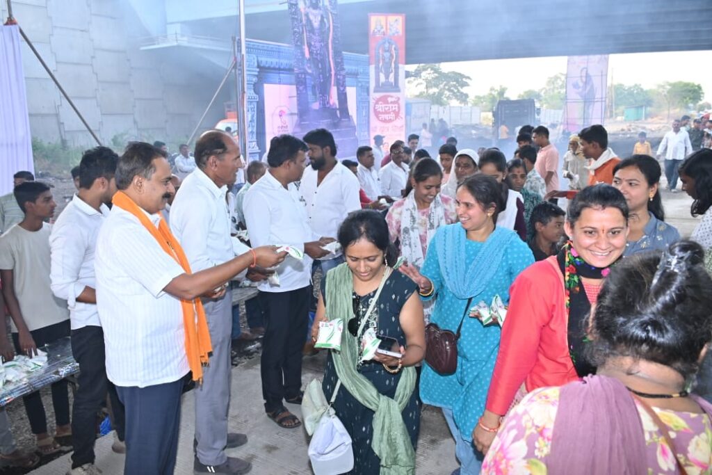 प्रभू श्रीराम नवमीनिमित्त संजीवनी युवा प्रतिष्ठानचे संस्थापक युवानेते विवेकभैय्या कोल्हे यांच्या मार्गदर्शनाखाली संजीवनी युवा प्रतिष्ठानच्यावतीने नगर मनमाड महामार्गावरील तीनचारी समृद्धी पूल येथे जवळपास तीस हजार भाविकांना ताक वाटप करण्यात आले.प्रसंगी मोठ्या संख्येने विविध संस्थांचे आजी माजी पदाधिकारी,कार्यकर्ते आणि युवासेवक मोठ्या संख्येने उपस्थित होते. साईगाव पालखी आणि मुंबादेवी तरूण मंडळाच्या वतीने दरवर्षी आयोजन केल्या जाणाऱ्या कोपरगावच्या मानाच्या पालखीचे पूजन करून पालखीवर पुष्पवृष्टी करण्यात आली.