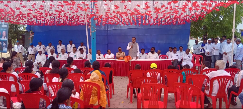 कार्यक्रमात प्रथम उपस्थित प्रमुख पाहुणे यांनी डॉ.बाबासाहेब आंबेडकरांच्या पुतळ्याला पुष्पहार अर्पण केला