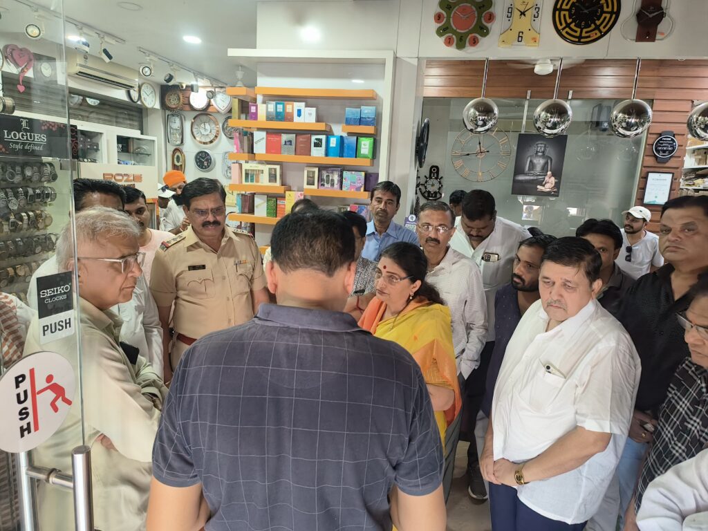 सचिन वॉच या दालनाचे मालक संजय लोहाडे आणि सनी लोहाडे यांची भेट घेऊन त्यांना धीर दिला.घडल्या प्रकाराने नाराजी व्यक्त केली व त्यांनी यावेळी म्हटले की, शहराच्या मध्यवर्ती भागात असे प्रकार घडणे अत्यंत गंभीर असून, नागरिकांच्या सुरक्षेचा प्रश्न अत्यंत महत्त्वाचा आहे.