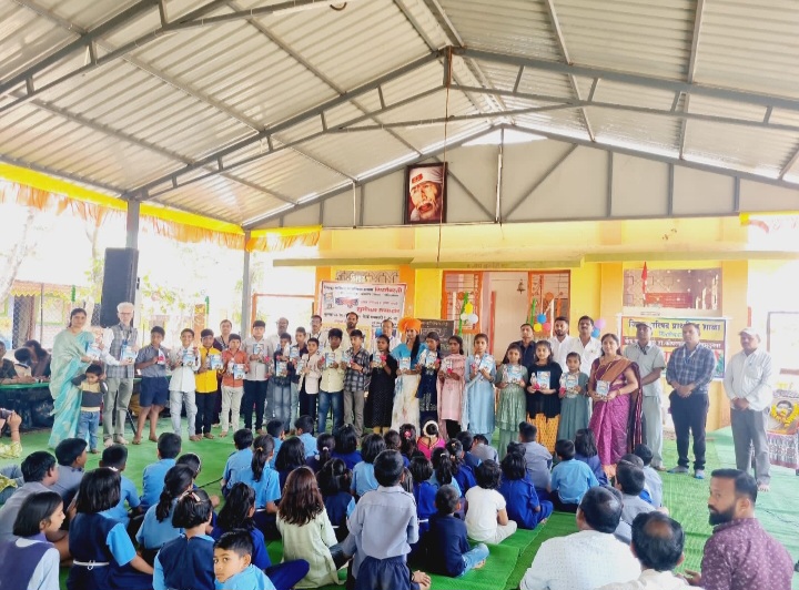 शाळेच्या वतीने उपस्थित मान्यवरांचा पुष्पगुच्छ, शाल आणि ‘बालांकुर’ पुस्तक देऊन यथोचित सन्मान करण्यात आला.