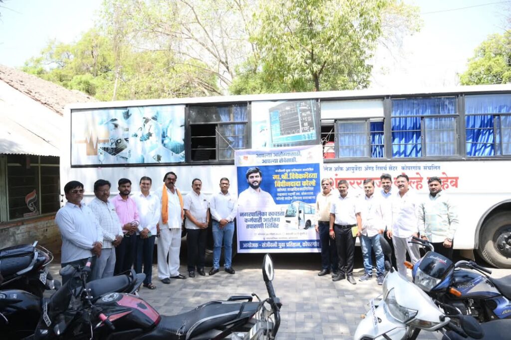 संजीवनी युवा प्रतिष्ठानच्या वतीने, युवानेते विवेकभैय्या कोल्हे यांच्या वाढदिवसाचे औचित्य साधून सहकारमहर्षी स्व. शंकरराव कोल्हे मोफत फिरता दवाखान्याच्या माध्यमातून नगरपालिका स्वच्छता कर्मचाऱ्यांसाठी विशेष आरोग्य शिबिराचे आयोजन करण्यात आले. सोमवार, दिनांक २८ एप्रिल २०२५ रोजी सकाळी १० ते दुपारी २ या वेळेत नगरपालिका कार्यालय येथे हे शिबिर पार पडले यात शेकडो कर्मचारी बंधू भगिनींची आरोग्य तपासणी करण्यात आली.