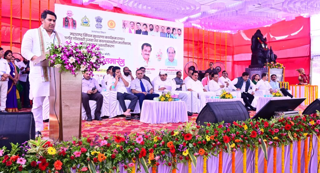 महाराष्ट्र सिंचन सुधारणा कार्यक्रम टप्पा १ अंतर्गत १९१.५८ कोटी रुपये निधीतून करण्यात येणाऱ्या गोदावरी उजवा तट कालव्यावरील माती काम, बांधकाम व अस्तरीकरण करणे कामाचा भूमिपूजन सोहळा शुक्रवार (दि.०२) रोजी अस्तगाव (ता.राहाता) येथे केंद्रीय जलशक्ती मंत्री ना.सी.आर.पाटील यांच्या शुभहस्ते व जलसंपदा मंत्री ना.राधाकृष्ण विखे पाटील यांच्या अध्यक्षतेखाली पार पडला यावेळी आ.आशुतोष काळे बोलत होते. तत्पूर्वी केंद्रीय जलशक्ती मंत्री ना.सी.आर. पाटील यांचे काकडी येथील श्री साईबाबा आंतरराष्ट्रीय विमानतळावर आगमन झाले असता आ.आशुतोष काळे यांनी कोपरगाव मतदारसंघाच्या वतीने त्यांचे स्वागत केले. यावेळी पुढे बोलतांना आ. आशुतोष काळे म्हणाले की, गोदावरी कालव्यांचे आयुर्मान १०० वर्षापेक्षा जास्त झालेले असून दरवर्षी लोकसंख्या वाढत आहे. धरणातील पाण्यावर पिण्याचे व औद्योगिकरणाचे आरक्षण मोठ्या प्रमाणात वाढत असल्यामुळे पर्यायाने शेतीसाठी पाणी दिवसेंदिवस कमी होत चालले आहे. कमी झालेल्या पाण्याची तुट भरून काढण्यासाठी पश्चिमेला समुद्राला वाहून जाणारे पाणी पूर्वेला अती तुटीच्या गोदावरी खोऱ्यात वळविणे अत्यंत गरजेचे आहे. हे पश्चिमेचे पाणी पूर्वेला वळविण्याचे काम जलसंपदा मंत्री ना.राधाकृष्ण विखे पाटील यांच्या हातून पूर्ण व्हावे व ते निश्चितपणे पूर्ण करतील आणि गोदावरी खोऱ्याची पाण्याची तुट भरून काढतील असा विश्वास आ.आशुतोष काळे यांनी यावेळी व्यक्त केला.यावेळी खासदार धनंजय महाडिक, माजी मंत्री आण्णासाहेब म्हस्के पा., मा. खा. सुजय विखे पा., जलसंपदा विभागाचे मुख्य सचिव दिपक कपूर, लाभक्षेत्र विकास सचिव मा.डॉ. संजय बेलसरे, गोदावरी मराठवाडा पाटबंधारे विकास महामंडळाचे कार्यकारी संचालक संतोष तिरमनवार, जलसंपदा उत्तर विभागाचे मुख्य अभियंता प्रकाश मिसाळ, कार्यकारी अभियंता श्रीम. सोनल शहाणे, उपविभागीय अभियंता तुषार खैरनार,गौतम बँकेचे मा. चेअरमन बाबासाहेब कोते, श्री साईबाबा संस्थानचे माजी विश्वस्त अभय शेळके, शिर्डीचे माजी नगराध्यक्ष कैलासबापू कोते आदींसह महायुतीचे कार्यकर्ते, शेतकरी व नागरिक मोठ्या संख्येने उपस्थित होते.