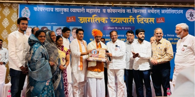 भारतीय अर्थव्यवस्था सक्षम व सुदृढ बनवण्यात कोपरगाव तालुक्यातील व्यापारी वर्गाचा खारीचा वाटा नक्कीच आहे. अनेक समस्यांना सामोरे जात तालुक्यातील व्यापारी, छोटे – मोठे किराणा दुकानदार ग्राहकांना सेवा देऊन त्यांचा विश्वास मिळवत आहे. तालुक्यातील व्यापारी हा स्पर्धेच्या युगात स्पर्धा करायला तयार आहे. परंतु व्यापारी महासंघाच्या मागण्यांमधील प्रमुख मागणी असलेली ‘वन नेशन, वन वेट, वन रेट’ ही मागणी लोकप्रतिनिधींनी विधानसभेत मांडावी. तसेच विवेक कोल्हे यांनी देखील अमित शहांकडे आमची मागणी मांडावी.असे प्रतिपादन कोपरगाव तालुका व्यापारी महासंघाचे अध्यक्ष ओमप्रकाश दादाप्पा तथा काका कोयटे यांनी केली.काका कोयटे यांच्या अध्यक्षतेखाली २५ मे जागतिक व्यापारी दिनानिमित्त कोपरगाव तालुका व्यापारी महासंघ, कोपरगाव तालुका किराणा मर्चंट असोसिएशन, युवा व्यापारी आघाडी, महिला व्यापारी आघाडी, कोपरगाव तालुका डीलर्स असोसिएशन यांच्या संयुक्त विद्यमाने आयोजित भव्य बाईक रॅली, ज्येष्ठ व्यापारी व नव उद्योजक सन्मान सोहळा आणि ग्राहक हक्क संरक्षण प्रबोधन कार्यक्रमात तालुक्यातील व्यापारी वर्गाला मार्गदर्शन करताना ते बोलत होते. या कार्यक्रमाला कोपरगाव तालुक्याचे आमदार आशुतोष काळे, सहकार महर्षी शंकररावजी कोल्हे सहकारी साखर कारखान्याचे चेअरमन विवेक कोल्हे, नामदेवराव परजणे गोदावरी दूध संघाचे चेअरमन राजेशआबा परजणे यांची प्रमुख उपस्थिती लाभली.काका कोयटे पुढे म्हणाले की, व्यापारी महासंघाचे कार्याध्यक्ष सुधीर डागा यांनी जे सादरीकरण केले. ते कोपरगाव तालुक्याच्या लोकप्रतिनिधींनी विधानसभेत मांडून ग्राहकांच्या फसवणुकीला आळा घालण्यासाठी सरकारला ‘वन नेशन, वन वेट वन रेट’ कायदा करण्यास भाग पाडावे. तसेच कोपरगाव तालुक्यातील सोनेवाडी भागात होणाऱ्या एमआयडीसीत स्थानिक व्यापाऱ्यांना प्राधान्य द्यावे. त्या जागांमध्ये उद्योग उभारण्यासाठी व्यापारी महासंघ व्यापाऱ्यांना मार्गदर्शन करील. समृद्धी महामार्गामुळे कोपरगाव ते मुंबई च्या प्रवास ३ तासावर येणार आहे. याचे सादरीकरण विधानसभेत लोकप्रतिनिधींनी करावे. त्याचा फायदा कोपरगावकरांना कसा करून देता येईल ? विशेषतः मुंबईचे व्यापारी व व्यापाऱ्यांकडील मुनिम कोपरगाव शहरात वास्तव्यास येण्यासाठी कोपरगाव कसे समृद्ध आहे ? कोपरगाव मध्ये त्यांची राहण्याची सोय चांगल्या पद्धतीने होऊ शकते ? या बाबींचा उल्लेख लोकप्रतिनिधींनी विधानसभेत मांडण्यात येणाऱ्या सादरीकरणांमध्ये प्रामुख्याने करावा.विशेषतः तालुक्यातील जेऊर कुंभारी, कोकमठाण या सारख्या ग्रामीण भागात कोपरगावातील बिल्डरांनी मोठ्या प्रमाणात वसाहती उभारल्या तर मुंबईचे व्य