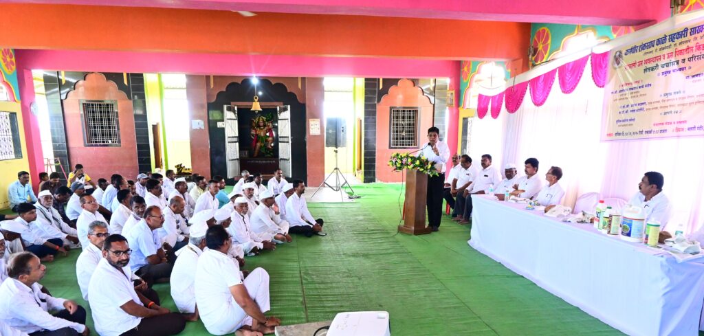 कर्मवीर शंकरराव काळे सहकारी साखर कारखान्याच्या सभासद व ऊस उत्पादक शेतकऱ्यांसाठी कारखान्याचे मार्गदर्शक व ज्येष्ठ संचालक मा.आ.अशोकराव काळे व कारखान्याचे चेअरमन आ. आशुतोष काळे यांच्या मार्गदर्शनाखाली कारखाना कार्यक्षेत्रातील कोपरगाव तालुक्यातील वडगाव-बक्तरपूर येथे आडसाली ऊस पिक व कीड नियंत्रणा बाबत परिसंवाद व चर्चा सत्र शनिवार (दि.१४) रोजी मोठ्या उत्साहात संपन्न झाले. अध्यक्षपदी कारखान्याचे व्हा.चेअरमन शंकरराव चव्हाण होते.कर्मवीर शंकरराव काळे सहकारी साखर कारखान्याच्या दैनंदिन गाळप क्षमतेत वाढ झाल्यामुळे ऊस उत्पादन वाढविण्याच्या दृष्टीने कारखाना संचालक मंडळाने कारखाना कार्यक्षेत्राच्या प्रत्येक गटात ऊस मेळावे व चर्चा सत्र घेण्याचे वार्षिक नियोजन केले आहे. त्यानुसार वडगाव बक्तरपूर येथे आयोजित करण्यात आलेल्या आडसाली ऊस पिक व कीड नियंत्रणा बाबत परिसंवाद व चर्चा सत्रात वसंतदादा शुगर इंस्टीट्युटचे ऊस उत्पादन व संरक्षक विभागाचे प्रमुख संशोधक डॉ.अशोक कडलग व रोग शास्त्र विभागाचे प्रमुख संशोधक डॉ.गणेश कोटगिरे यांनी उपस्थित ऊस उत्पादक शेतकऱ्यांना मार्गदर्शन केले.यावेळी डॉ.अशोक कडलग यांनी ऊस पिकाच्या पाणी व खत व्यवस्थापनाबद्दल माहिती देतांना सांगितले की, ऊस पिकाची लागवड करतांना शेतकऱ्यांनी योग्य जमिनीची निवड करून सेंद्रिय कर्ब वाढवावे.खतांचा संतुलित वापर करावा.क्षारयुक्त जमिनीची सुधारणा करून पाण्याचा कमीत कमी वापर करून जास्तीत जास्त ऊस उत्पादन घ्यावे. त्यासाठी कृत्रिम बुद्धिमत्ता अर्थात ए.आय चे देखील मार्गदर्शन घ्यावे असा सल्ला दिला.