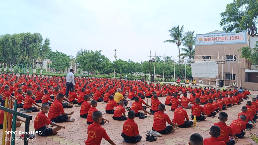 कर्मवीर शंकरराव काळे एज्युकेशन सोसायटी संचलित गौतम पब्लिक स्कूलमध्ये आंतरराष्ट्रीय योग दिन मोठ्या उत्साहात साजरा करण्यात आला. यावेळी शालेय परिसर चैतन्याने भरून गेला होता. शाळेचे प्राचार्य नूर शेख यांनी विद्यार्थ्यांना संबोधित करताना सांगितले की, विद्यार्थी, पालक आणि शिक्षकांनी आपली जीवनशैली योगमय करून नियमित योग साधना केली पाहिजे. आपले शरीर आणि मन सुंदर घडवायचे असेल, तर प्रत्येकाने दिवसाची सुरवात योग साधनेने करावी असे आवाहन केले. मैदानी खेळात वर्चस्व असलेल्या गौतम पब्लिक स्कूलमध्ये विद्यार्थ्यांना नियमितपणे मैदानावर विविध खेळाचे गुणवत्तापूर्ण प्रशिक्षण दिले जाते. यामध्ये नियमित व्यायामाचा सराव व योग साधना देखील विद्यार्थ्यांकडून करून घेतली जाते. त्याचा सकारात्मक परीणाम विद्यार्थ्यांच्या बौद्धिक क्षमतेवर होतो. त्यामुळे आंतरराष्ट्रीय योग दिन हा विद्यार्थ्यांना योगाभ्यासाद्वारे शारीरिक आणि मानसिक तंदुरुस्तीसाठी अत्यंत महत्त्वपूर्ण होता. उल्लेखनीय बाब म्हणजे, शिक्षकांनी उत्साहाने विद्यार्थ्यांसोबत विविध योगासने करण्यात सहभाग घेतला. त्यामुळे एक सुसंवादी आणि फलदायी वातावरण निर्माण झाले होते. एकूण १२०० विद्यार्थ्यांनी सहभाग घेवून आंतरराष्ट्रीय योग दिन मोठ्या उत्साहात साजरा केला. प्राचार्य नूर शेख यांच्या मार्गदर्शनाखाली क्रीडा संचालक सुधाकर निलक, हॉकी प्रशिक्षक रमेश पटारे, हॉलीबॉल प्रशिक्षक राजेंद्र आढाव, क्रिकेट प्रशिक्षक इसाक सय्यद यांनी आंतरराष्ट्रीय योग दिन साजरा करण्यासाठी विशेष मेहनत घेतली. संस्थेचे चेअरमन मा.आ. अशोकराव काळे, विश्वस्त आ. आशुतोष काळे, व्हा.चेअरमन छबुराव आव्हाड, सचिव सौ. चैतालीताई काळे, सर्व संस्था सदस्य यांनी शाळेची वाढती विद्यार्थी संख्या व भव्य योग दिन साजरा केल्या बद्दल प्राचार्य व क्रीडा विभाग यांचे कौतुक केले.