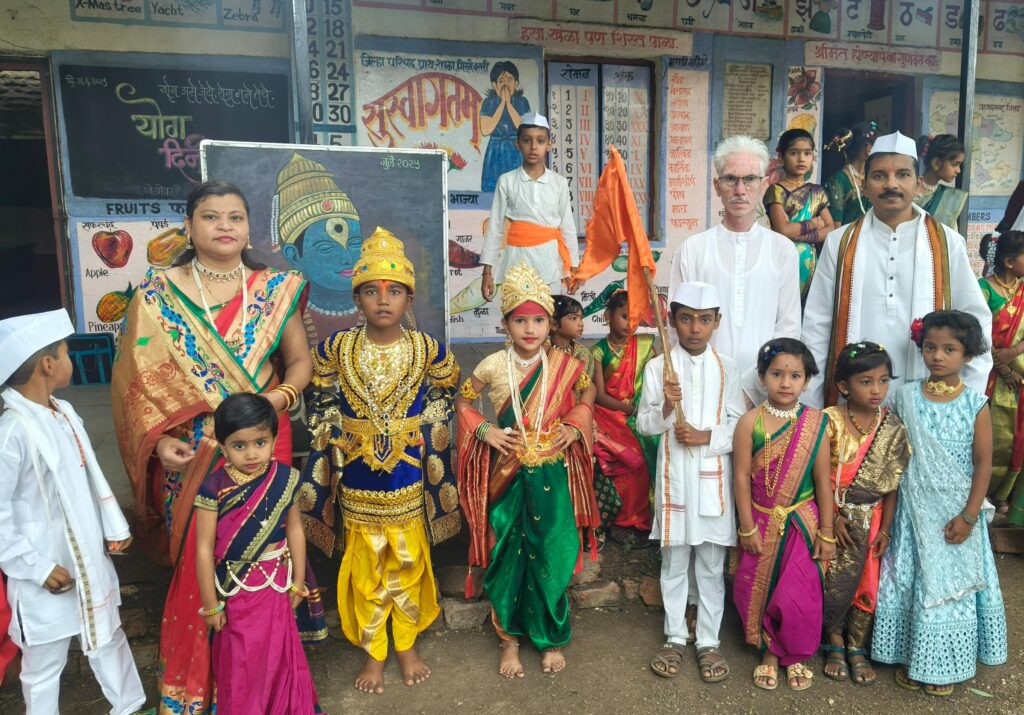 यावेळी सुदर्शन धिवर या विद्यार्थ्याने भगवान विठ्ठलाची तर श्रावणी पगारे हिने रुक्मिणी मातेची आकर्षक वेशभूषा धारण केली होती, जी सर्वांचे लक्ष वेधून घेत होती. विशेष म्हणजे, विद्यार्थ्यांनी स्वतः बनवलेली आकर्षक पालखी दिंडीचे मुख्य आकर्षण ठरली. परिसरातील अनेक कुटुंबांनी या चिमुकल्या वारकरी दिंडीची भक्तीभावाने पूजा करून त्यांचे कौतुक केले. दिंडीतील विद्यार्थ्यांच्या चेहऱ्यावरचा आनंद ओसंडून वाहत होता, ज्यामुळे वातावरणात चैतन्य निर्माण झाले होते.