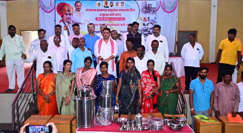 कोपरगाव शहरातील महात्मा गांधी जिल्हा प्रदर्शन चॅरिटेबल हॉल येथे कोपरगाव मतदार संघातील ६२६ नोंदणीकृत बांधकाम कामगारांना आ.आशुतोष काळे यांच्या हस्ते गृहपयोगी वस्तूंचे वितरण करण्यात याप्रसंगी ते बोलत होते. यावेळी त्यांनी बांधकाम कामगारांच्या योगदानाचे कौतुक करतांना समाजाच्या विकासात मोलाचा वाटा उचलणाऱ्या बांधकाम क्षेत्रातील कामगारांचे योगदान अमूल्य असल्याचे सांगितले. बांधकाम कामगार म्हणजेच आपल्या कोपरगाव मतदार संघाचा भक्कम पाया आहे. त्यांच्या कष्टातूनच भव्य-दिव्य इमारती उभ्या राहतात, रस्ते रुंदावतात आणि प्रगती होते. या कामगारांच्या कष्टाचे चीज व्हावे आणि त्यांचा संसाराचा आर्थिक भार कमी होवून त्यांच्या सुरक्षिततेसाठी आवश्यक साधने व गृहपयोगी वस्तू महायुती शासनाने उपलब्ध करून दिल्या असून यापुढील काळातही त्यांच्या सुरक्षिततेसाठी आणि विकासासाठी महायुती शासन कटिबद्ध आहे. समाजातील अशा अनेक कष्टकरी शासनाच्या योजना केवळ कागदावर न राहता प्रत्यक्षात त्यांच्या पर्यंत पोहोचत आहे आणि यापुढेही शासनाच्या विविध योजना गरजू व पात्र लाभार्थ्यांपर्यंत पोहोचत राहतील असे आ.आशुतोष काळे यांनी यावेळी सांगितले.