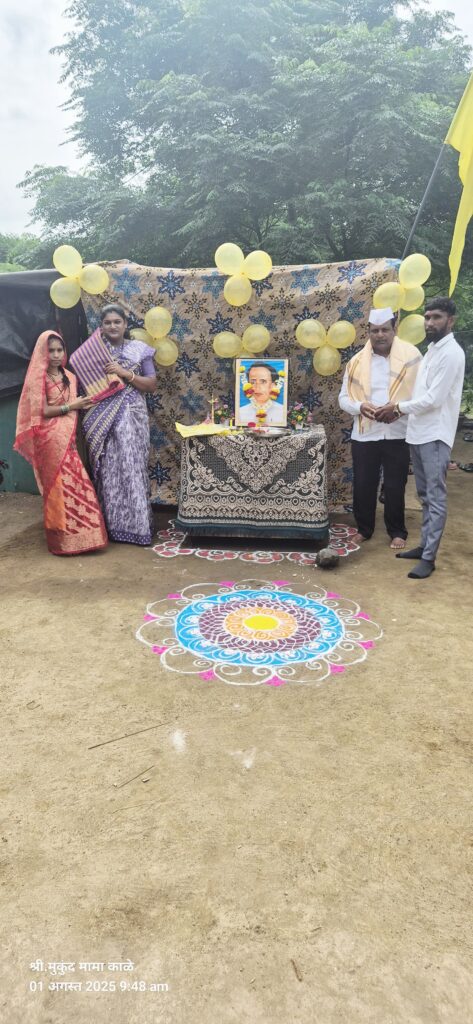 कोपरगाव दि.१ (प्रतिनिधि) अण्णाभाऊ साठे जयंती निमित्त संवत्सर येथील वाघीनाला वस्ताद प्रतिष्ठानने आयोजित केलेल्या कार्यक्रमाला भारतीय जनता पार्टी दिव्यांग सेलचे कोपरगाव तालुकाध्यक्ष मुकुंद मामा काळे अध्यक्ष स्थानी उपस्थित होते.त्यांनी अण्णाभाऊ साठे प्रतिमेचे पूजन करून अभिवादन केले.यावेळी बोलतांना काळे म्हणाले अण्णाभाऊ साठे यांनी समाजाला दिशा दिली.