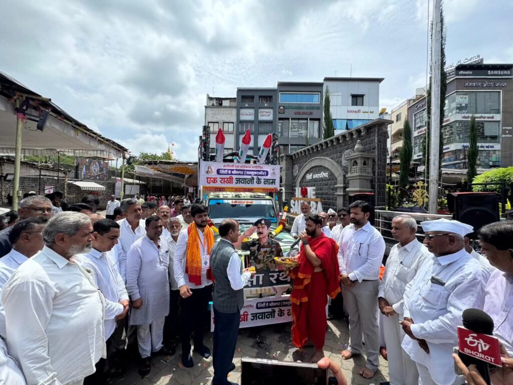 संजीवनी युवा प्रतिष्ठान आयोजित एक राखी जवानांसाठी या उपक्रमासाठी देशातील विविध ठिकाणांहून राखी संकलन करण्यात येणार आहे. यासाठी शिर्डी ते श्रीनगर रथ यात्रेचे आज शिर्डी येथून प्रस्थान झाले. या प्रसंगी अतिथी म्हणून शिर्डी संस्थानचे सीईओ गोरक्ष गाडीलकर, उपविभागीय पोलिस अधिकारी शिरीष वमने हजर होते.संजीवनी युवा प्रतिष्ठानचे अध्यक्ष युवानेते विवेकभैय्या कोल्हे आणि संजीवनी शिक्षण संस्थेचे विश्वस्त सुमितदादा कोल्हे यांनी उपस्थितांचे स्वागत केले.मान्यवरांनी तिरंगा ध्वज दाखवून या राखी यात्रेला प्रारंभ केला आणि शुभेच्छा दिल्या.संजीवनी युवा प्रतिष्ठान गेले दहा वर्ष विविध सामाजिक उपक्रम राबवत आहे. एक राखी जवानांसाठी हा उपक्रम गेली पाच वर्ष मोठ्या उत्साहात राबवला जातो. या वर्षी एक लाखाहून अधिक राख्या शिर्डी ते श्रीनगर राखी यात्रेत जमा होणार असून त्या सैनिक बांधवांना सीमेवर रक्षाबंधनानिमित्त पोहोचविण्यात येत आहे या उपक्रमात मोठ्या संख्येने नागरिकांनी सहभागी व्हावे असे आवाहन विवेकभैय्या कोल्हे यांनी केले. पुढे बोलताना ते म्हणाले साईबाबांच्या भूमीमध्ये अनेक क्रांतिकारकांनी आशीर्वाद घेतले आहेत व शिर्डी सारख्या भूमीत अनेक स्वातंत्र्य सैनिक घडले आहेत त्यामुळे देशाचे रक्षण करणाऱ्या सैनिकांना साईबाबांच्या नगरीतून सुरुवात झालेली ही रथयात्रा सहा राज्यातून प्रवास करणार असून पंचिवस मोठ्या शहरांमध्ये या यात्रेचे स्वागत होणार असल्याचे कोल्हे म्हणाले.याप्रसंगी विविध मान्यवरांनी शुभेच्छा व्यक्त करत संजीवनी युवा प्रतिष्ठानचा हा उपक्रम कौतुकास्पद असून भविष्यात देखील अविरतपणे सुरू राहावा. साईबाबांच्या पावनभूमीतून या उपक्रमाची यावर्षी झालेली सुरुवात ही निश्चितच भविष्यात अधिक व्यापक स्वरूपात पुढे जाईल असा आशावाद व्यक्त झाला. विवेकभैय्या कोल्हे यांनी भविष्यकाळात देखील एक राखी जवानांसाठी हा उपक्रम शिर्डी ते श्रीनगर कायमस्वरूपी सुरू ठेवावा अशी मागणी देखील शिर्डी येथील नागरिकांनी केली.साई मंदिरात राखी बाबांच्या चरणाला स्पर्श करून राखी संकलनाला सुरुवात करण्यात आली.संजीवनी सैनिकी स्कूल बँड पथकाने अतिशय प्रभावी देशभक्तीचे गीत वाजवत वातावरण अतिशय ऊर्जापूर्ण केले होते.