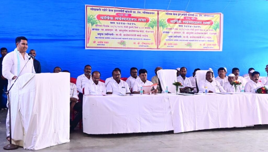 गोदावरी खोरे केन ट्रान्सपोर्ट कंपनी प्रा. लि; गौतमनगरची ५४ वी व गौतम केन ट्रान्सपोर्ट कंपनी प्रा. लिमिटेडची २६ वी वार्षिक सर्वसाधारण सभा नुकतीच कंपनीचे मार्गदर्शक व चेअरमन आ.आशुतोष काळे यांच्या अध्यक्षतेखाली खेळीमेळीच्या वातावरणात पार पडली याप्रसंगी ते बोलत होते. हिंदवी स्वराज्याचे संस्थापक छत्रपती शिवाजी महाराज, कर्मवीर शंकररावजी काळे व सौ.सुशीलामाई काळे यांच्या प्रतिमेचे पूजन करून सभेस प्रारंभ करण्यात आला. अध्यक्ष पदाची सूचना चंद्रशेखर कडवे यांनी मांडली. सदर सूचनेस रवींद्र आहेर यांनी अनुमोदन दिले. संचालक आप्पासाहेब निकम यांनी २०२४-२५ या आर्थिक वर्षात निधन झालेल्या व्यक्तींना श्रद्धांजली वाहिली.याप्रसंगी पुढे बोलतांना आ.आशुतोष काळे म्हणाले की, मागील वर्षीचा गळीत हंगाम टंचाईचा होता. त्यामुळे सर्व प्रकारचा खर्च वाढला व ऊस वाहतूक करणाऱ्या ट्रक धारकांचा व्यवसाय देखील कमी झाला.ऊस तोडणी मजुरांचा प्रश्न मोठा अवघड झाला आहे त्यामुळे स्वत:ची ऊस तोडणी मजुरांची टोळी असणे गरजेचे आहे. मात्र ऊस तोडणी मजुर मिळत नसल्यामुळे भविष्यात केन हार्वेस्टिंग शिवाय दुसरा पर्याय नाही.एका साखर हंगामात लाखो टन ऊस तोडायचा असतो. मजुरांची संख्या कमी असल्याने कारखान्यांना वेळेत उस गाळप करता येत नाही. परिणामी शेतकऱ्यांचे नुकसान होते आणि कारखान्यांच्या कार्यक्षमतेवरही परिणाम होवून कारखान्याचे देखील नुकसान होते. केन हार्वेस्टरची किंमत जास्त आहे ते खरेदी करणे एक-दोघांचे काम नाही त्यासाठी चार-पाच ट्रक धारकांनी मिळून केन हार्वेस्टर घ्यावे त्यामुळे ऊस तोडणी मजुरांच्या भरवशावर राहावे लागणार नाही.आपल्या कारखान्याची गाळप क्षमता काही प्रमाणात वाढणार आहे.गळीत हंगामाच्या दृष्टीने आवश्यक असलेली कारखान्याची तयारी अंतिम टप्यात आली आहे त्या दृष्टीने सर्व ऊस वाहतूक करणाऱ्या ट्रक धारकांनी सज्ज रहावे. ऊस वाहतूक करणाऱ्या ट्रक धारकांना कर्मवीर शंकररावजी काळे साहेब व माजी आमदार अशोकराव काळे यांनी ज्याप्रमाणे सोयी सुविधा दिल्या त्या सुविधा यापुढील काळातही दिल्या जातील व तुमच्या अडचणी सोडविल्या जातील अशी ग्वाही आ.आशुतोष काळे यांनी यावेळी दिली.सभेचे प्रास्तविक गोदावरी खोरे केन ट्रान्सपोर्ट कंपनीचे कार्यकारी संचालक दौलतराव मोरे यांनी केले. कार्यक्रमाचे सूत्रसंचालन व अहवाल वाचन जनरल मॅनेजर संतोष पवार यांनी केले तर आभार संचालक विजय जाधव यांनी मानले.यावेळी सर्व विषय टाळ्यांच्या गजरात मंजूर करण्यात आले. यावेळी गौतम केन ट्रान्सपोर्टचे ज्येष्ठ संचालक छबुराव आव्हाड, कर्मवीर शंकरराव काळे सहकारी साखर कारखान्याचे उपाध्यक्ष प्रवीण शिंदे, संचालक राजेंद्र घुमरे,वसंतराव आ