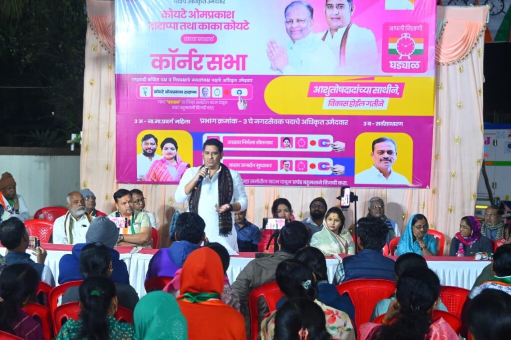 कोपरगाव शहराच्या सर्वांगीण आणि शाश्वत विकासासाठी नगरपालिकेच्या माध्यमातून मुलभूत सर्व विकासकामे करणार आहे. होवू घातलेल्या कोपरगाव नगरपरिषदेच्या निवडणुकीत राष्ट्रवादी कॉंग्रेस पक्षाचा नगराध्यक्ष आणि सर्व नगरसेवक निवडून द्या तुम्हाला अपेक्षित असलेला कोपरगाव शहराचा विकास करून शहराचा चेहरा मोहरा बदलवून दाखवतो अशी साद आ.आशुतोष काळे यांनी कोपरगावकरांना घातली आहे. कोपरगाव नगरपरिषद निवडणुकीच्या पार्श्वभूमीवर प्रभाग क्रमांक १२ व १३ मध्ये राष्ट्रवादी काँग्रेसचे नगराध्यक्ष पदाचे उमेदवार ओमप्रकाश (काका) कोयटे तसेच नगरसेवक पदाच्या उमेदवारांच्या प्रचारार्थ आयोजित कॉर्नर सभेत ते बोलत होते. यावेळी नगराध्यक्ष पदाचे उमेदवार काकासाहेब कोयटे, तसेच नगरसेवकपदाचे उमेदवार, राष्ट्रवादी कॉंग्रेस पक्षाचे पदाधिकारी, कार्यकर्ते व नागरीक मोठ्या संख्येने उपस्थित होते.या सभेत पुढे बोलतांना आ.आशुतोष काळे यांनी कोपरगाव शहरातील प्रलंबित प्रश्नांकडे लक्ष वेधतांना सांगितले की, रस्ते, पाणी पुरवठा, स्वच्छता व्यवस्था, भूमिगत गटारी, भूमिगत वीजवाहिन्या, नागरिकांचे आरोग्य, शिक्षण आणि इतर मूलभूत नागरी सुविधा या सर्व बाबी विकासाच्या केंद्रस्थानी आहेत. कोपरगावकरांनी अनेक वर्षे फक्त आश्वासनांचे राजकारण पाहिले आहे. त्यामुळे आता केवळ घोषणा नको, तर प्रत्यक्ष कामातून दिसणारा विकास कोपरगावकरांना हवा आहे. म्हणूनच नगरपालिकेच्या माध्यमातून नागरिकांना अपेक्षित असलेला विकास करून शहराला समृद्ध बनवणे हेच माझे ध्येय आहे.