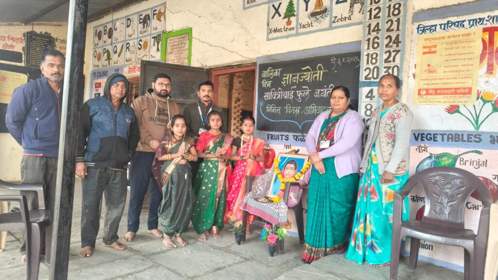 जिल्हा परिषद प्राथमिक शाळा गिरमे वस्ती येथे क्रांतीज्योती माता सावित्रीबाई फुले यांची जयंती साजरी करण्यात आली. यावेळी शाळेच्या मुख्याध्यापिका सौ पर्वत मॅडम यांनी माता सावित्रीबाई फुले यांच्या प्रतिमेस पुष्पहार अर्पण करून अभिवादन केले . विद्यार्थ्यांना मार्गदर्शन करताना त्या म्हणाल्या की माता सावित्रीबाई फुले या थोर समाज सुधारक असून स्त्री शिक्षणाच्या प्रणेत्या होत्या. त्यांनी शिक्षणाची मशाल हाती घेऊन समाजाला नवीन दिशा दिली. श्री धूमणे सर यांनी विद्यार्थ्यांना माता सावित्रीबाई फुले यांचा जीवनप्रवास सांगून त्यांच्या जीवन प्रवासातून प्रेरणा घेऊन आपण महिला सक्षमीकरण आणि समाज सुधारण्यासाठी जागरूक आणि कटिबद्ध असले पाहिजे असे सांगितले. तर ग्रामपंचायत सदस्य प्रदीप गायकवाड यांनी माता सावित्रीबाई फुले यांना अभिवादन करून विद्यार्थ्यांना मार्गदर्शन करताना सांगितले की, माता सावित्रीबाई फुले यांनी त्याकाळी मुलींसाठी पहिली शाळा उघडली. त्यांनी स्त्री शिक्षणावर विशेष भर दिला. समाजाचा विरोध आणि अनेक अडचणींवर मात करत त्यांनी हे महान कार्य केले. डॉक्टर बाबासाहेबांनी संविधानातून स्त्रियांना विशेष अधिकार दिले तर माता सावित्रीबाई फुले यांनी स्त्री शिक्षणासाठी प्रत्यक्ष पुढाकार घेतला. त्यामुळेच आजच्या आधुनिक युगात आपल्या भारत देशामध्ये एक महिला राष्ट्रपती व पंतप्रधान होऊ शकते. यावेळी ग्रामस्थ भास्कर चव्हाण शंकर वक्ते, अंगणवाडी सेविका श्रीमती होन, वक्ते मावशी विद्यार्थी उपस्थित होते. तर काही विद्यार्थिनींनी माता सावित्रीबाईंची वेशभूषा करून भाषण केले.