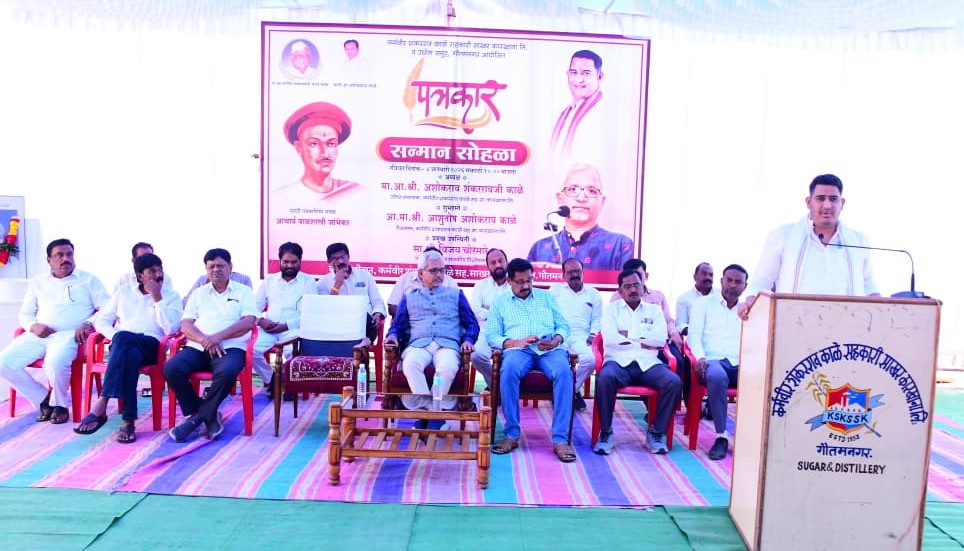कर्मवीर शंकरराव काळे सहकारी साखर कारखाना व उद्योग समूहाच्या वतीने कारखाना कार्यस्थळावर पत्रकार दिनाचे औचित्य साधत पत्रकार सन्मान सोहळा आयोजित करण्यात आला होता. या सत्कार सोहळ्या प्रसंगी आ. आशुतोष काळे बोलत होते.या प्रसंगी कार्यक्रमाचे प्रमुख अतिथी जेष्ठ पत्रकार तथा राजकीय विश्लेषक डॉ.विजय चोरमारे ज्या भागात सहकारी साखर कारखान्याच्या माध्यमातून रोजगार निर्मितीतून नागरिकांच्या राहणीमानात अमुलाग्र बदल झाले व सहकाराच्या माध्यमातून कशा प्रकारे विकास साधला जावू शकतो हे कर्मवीर शंकरराव काळे सहकारी साखर कारखाना परिसराच्या प्रगतीवरून दिसून येते. त्यामुळे सहकारी साखर कारखान्यांच्या बाबतीतही चुकीचे गैरसमज असल्याचे दिसून येते असे अनेक नरेटिव्ह सोशल मिडीयाच्या माध्यमातून बेमालूमपणे पसरविले जातात त्याची कोणी सत्यता पडताळूनही पाहत नाही. मात्र अशा फेक नरेटिव्हची खातरजमा करणे हे पत्रकारांचे कर्तव्य असून सत्य आणि अचूक बातमी नागरिकांपर्यंत पोहोचविणे हि पत्रकारांची जबाबदारी असल्याचे रोख ठोक मत जेष्ठ पत्रकार तथा राजकीय विश्लेषक डॉ.विजय चोरमारे यांनी व्यक्त केले.