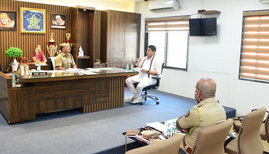 कोपरगाव मतदार संघात बिघडलेल्या कायदा सुव्यस्थेच्या बाबतीत जिल्हा पोलीस अधीक्षक सोमनाथ घार्गे यांच्याशी चर्चा करतांना आ.आशुतोष काळे.