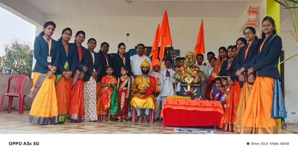 छत्रपती शिवाजी महाराज हे महाराष्ट्राच्या शौर्याचे प्रतीक आहेत. महाराष्ट्रातील प्रत्येक व्यक्तीसाठी शिवाजी महाराज हे केवळ एक नाव नसून शौर्य, समता, प्रेरणा आणि अस्थेचे केंद्र आहे त्यांचे विचार आपण आचरणात आणले पाहिजे असे प्राचार्या ज्योती खरात यांनी आपल्या भाषणातून सांगितले.