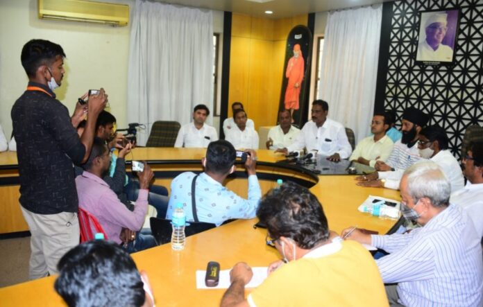 पत्रकार परिषदेत बोलतांना राष्ट्रवादी कॉंग्रेस, शिवसेना व मनसेचे पदाधिकारी.
